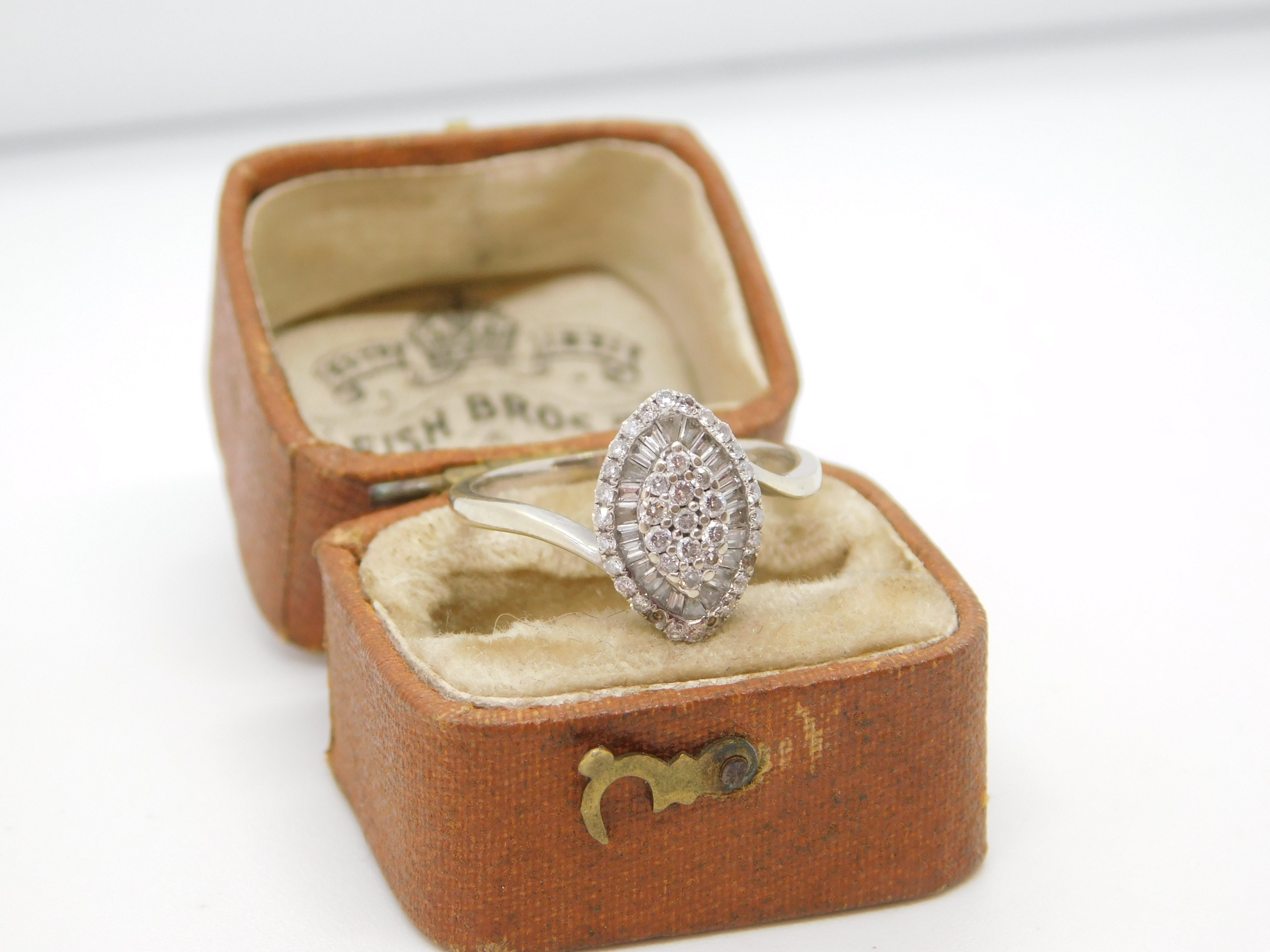 18ct Yellow Gold Marquise & Baguette Cut Diamond Dress Ring London 2000