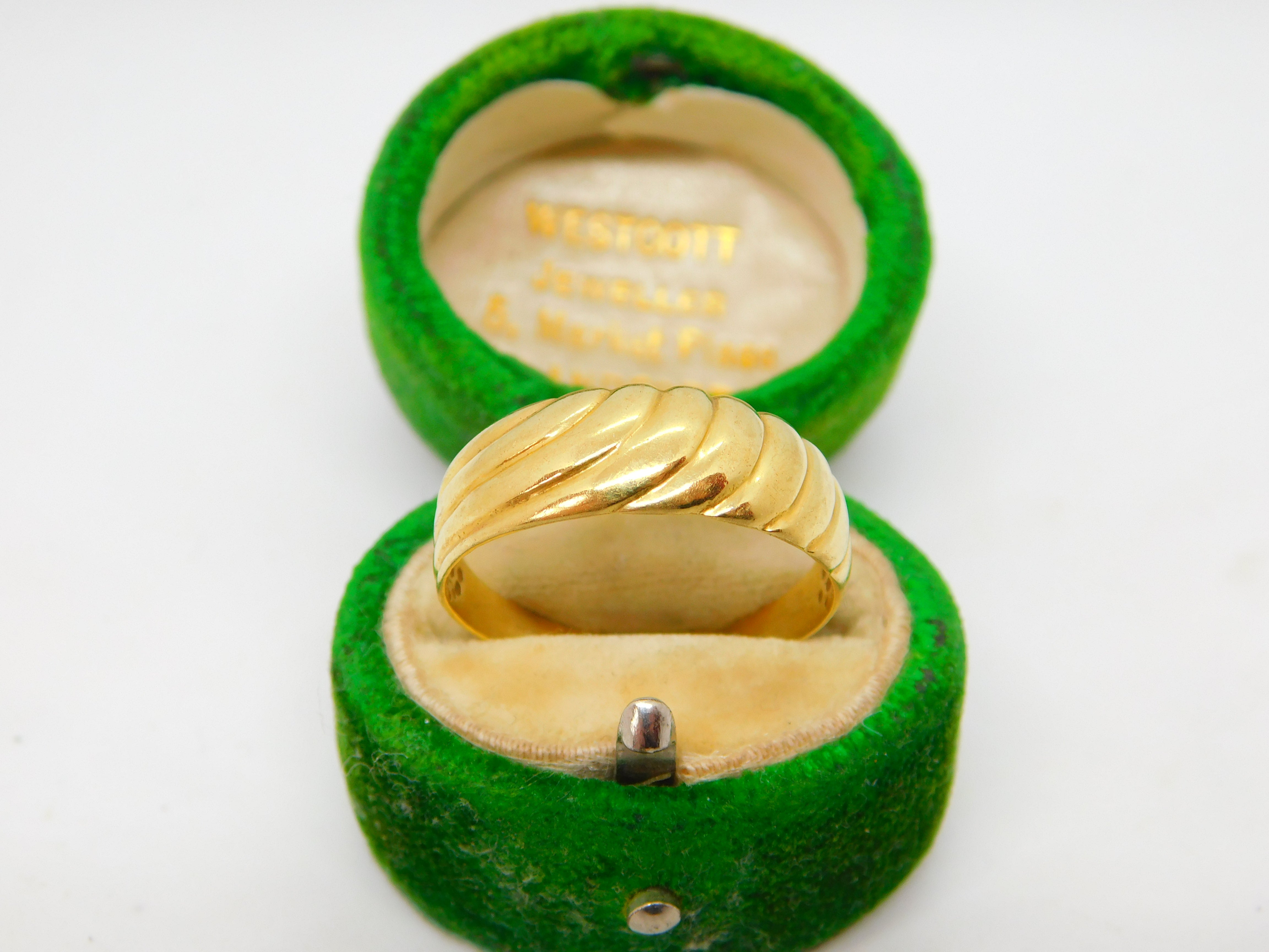 18ct Yellow Gold Modernist Wave Pattern Band Ring Vintage c1980 Size S 1/2 UK