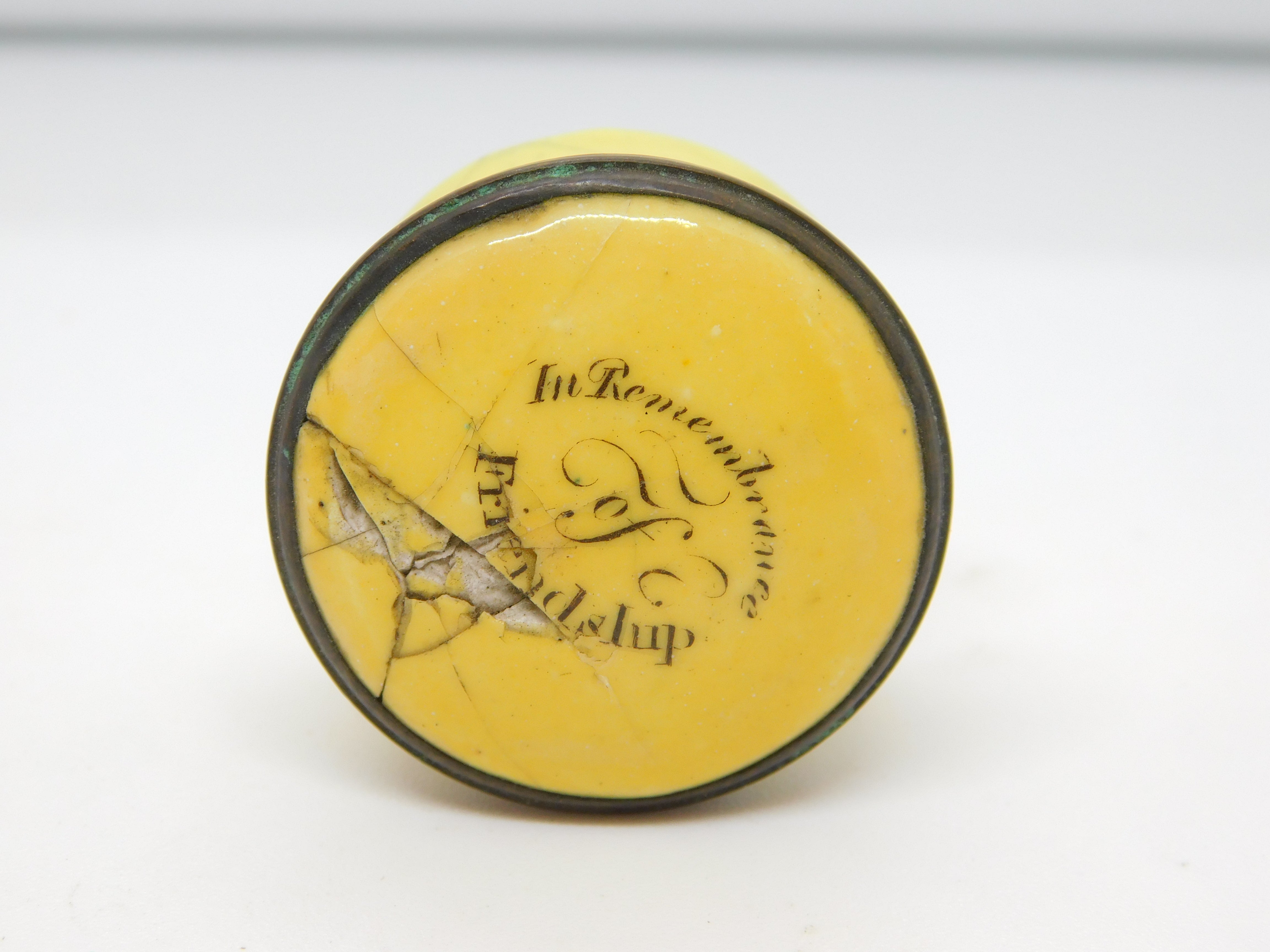 George III Bilston Enamel 'In Remembrance of a Friendship' Patch Box c1790 AF