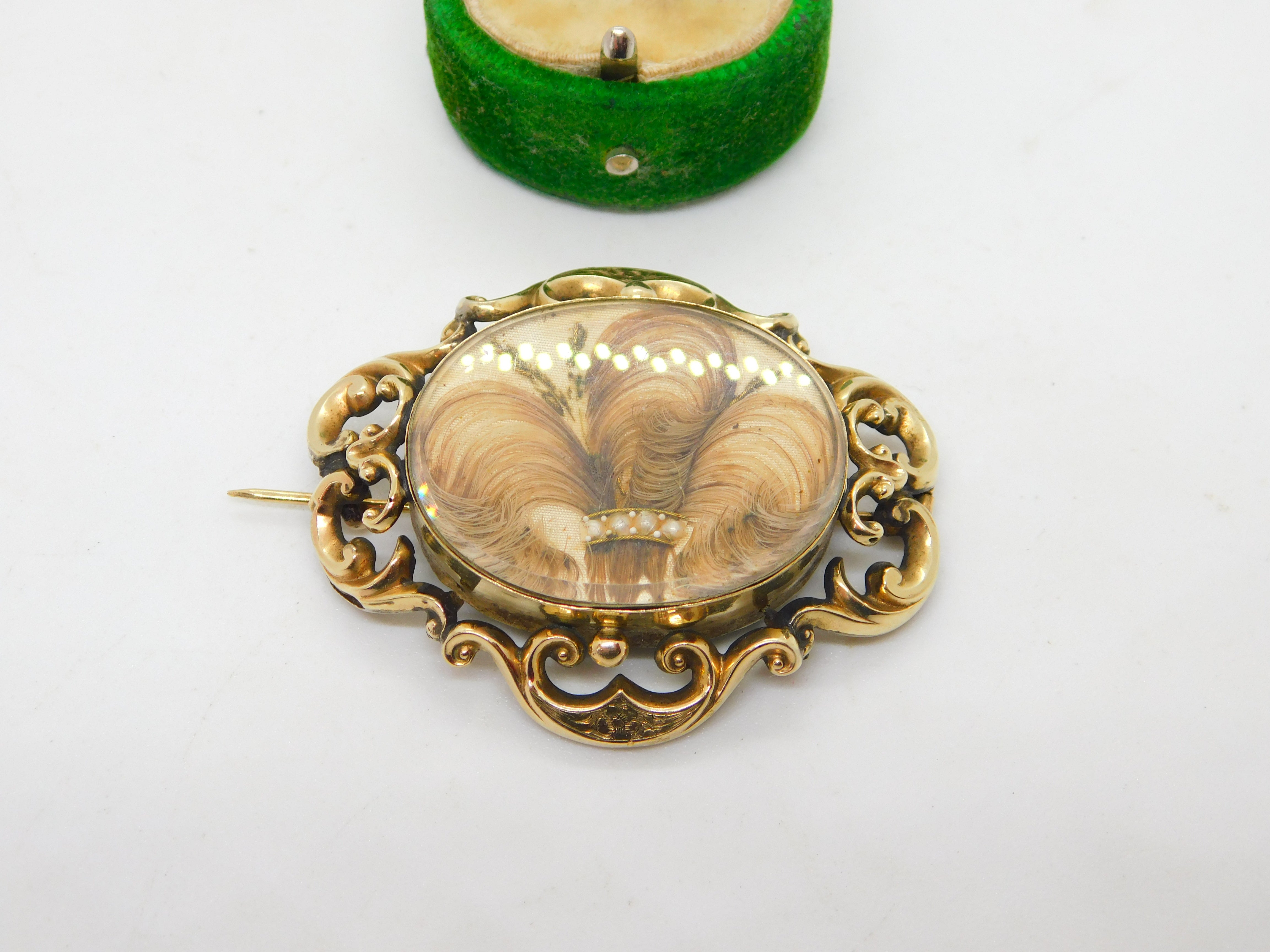 George III 9ct Yellow Gold, Hair & Seed Pearl Mourning Brooch Antique c1820