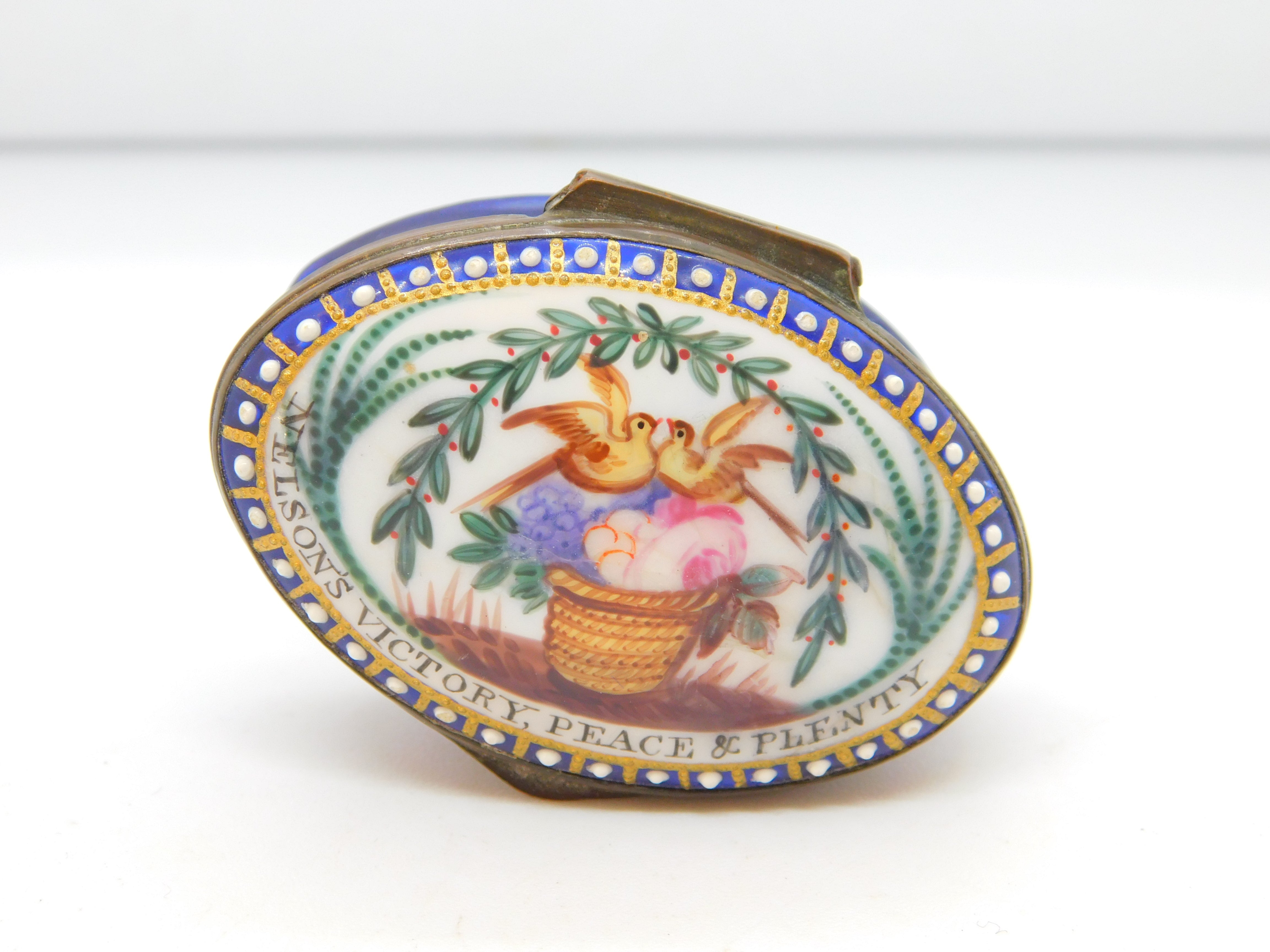 George III Bilston Enamel 'Nelson's Victory, Peace & Plenty' Patch Box Antique c1805