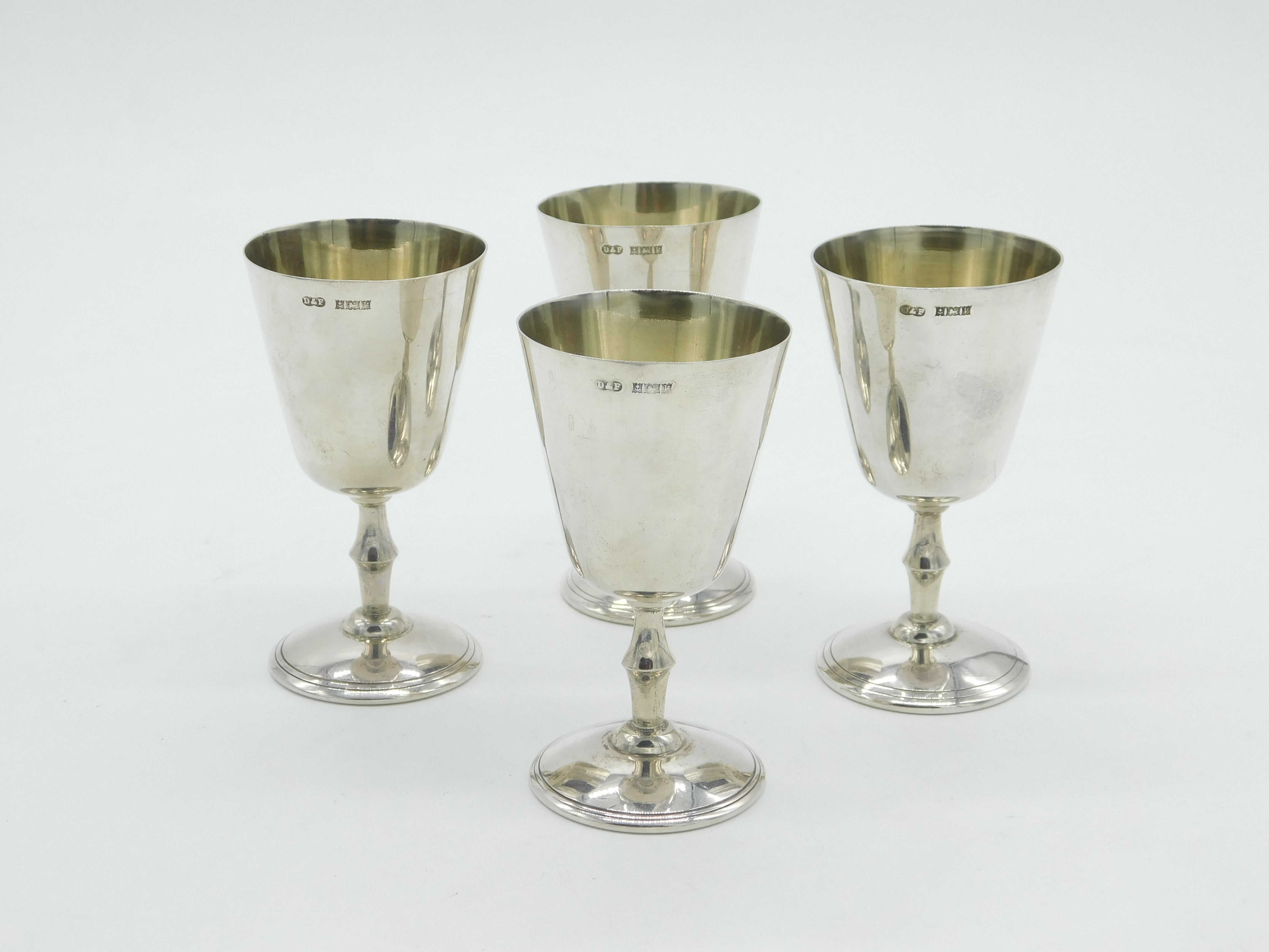 Set of Four Sterling Silver Liqueur or Wine Goblets Vintage 1970 Birmingham