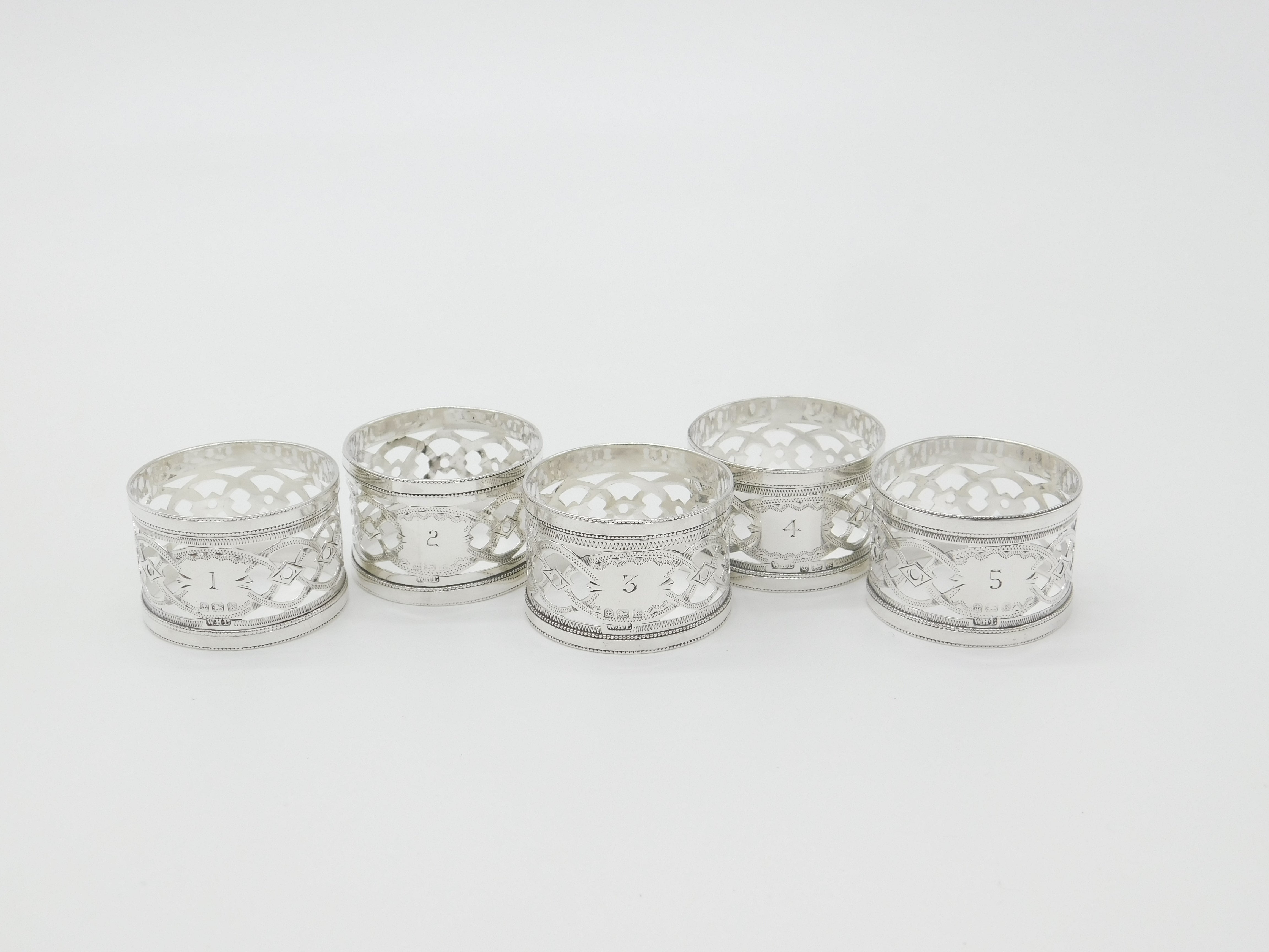 Set of Five Sterling Silver No. 1,2,3,4,5 Napkin Rings Antique 1909 Birmingham