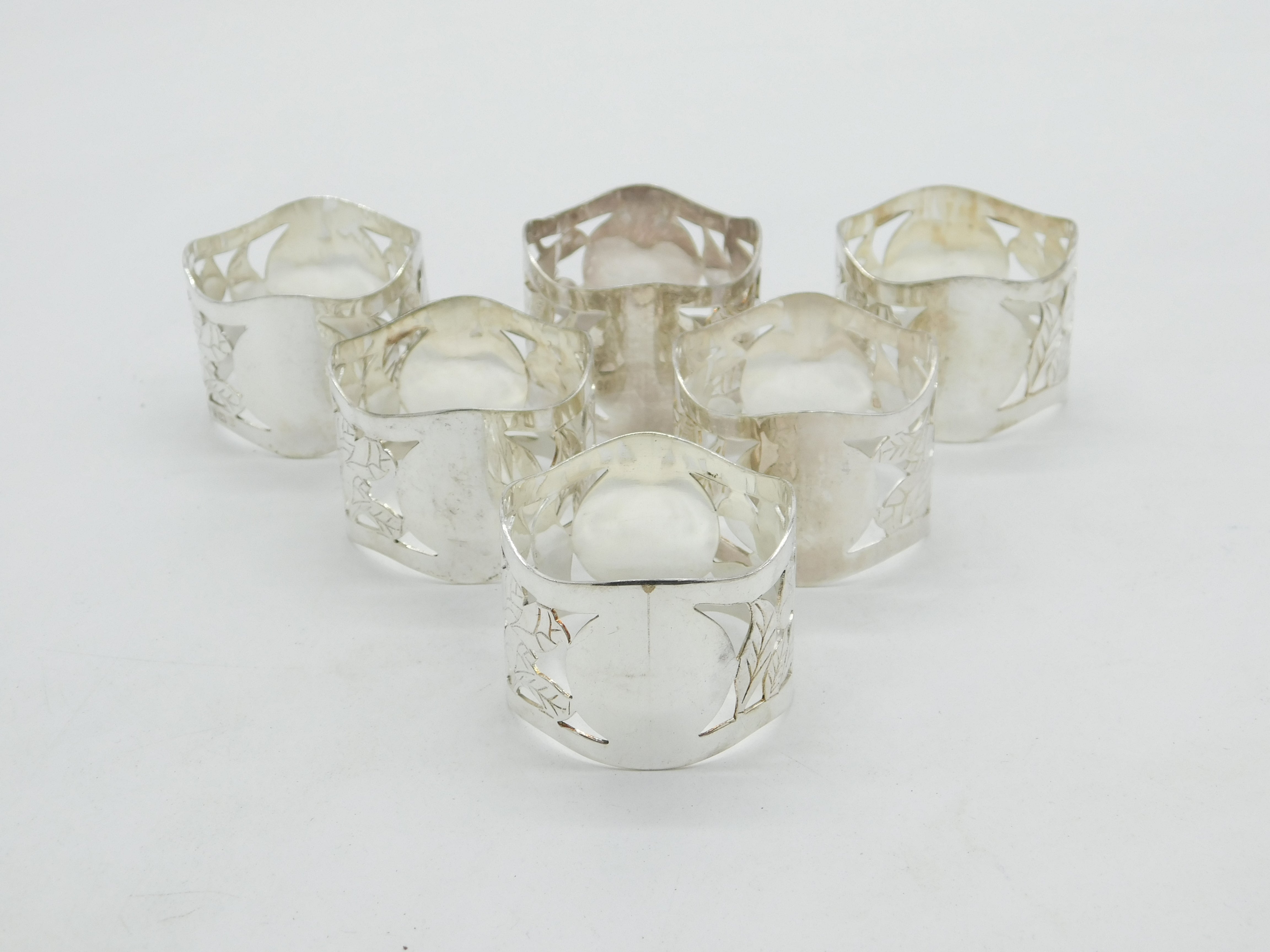 Set of Six Sterling Silver Floral Pattern Napkin Ring 1993 Vintage Birmingham
