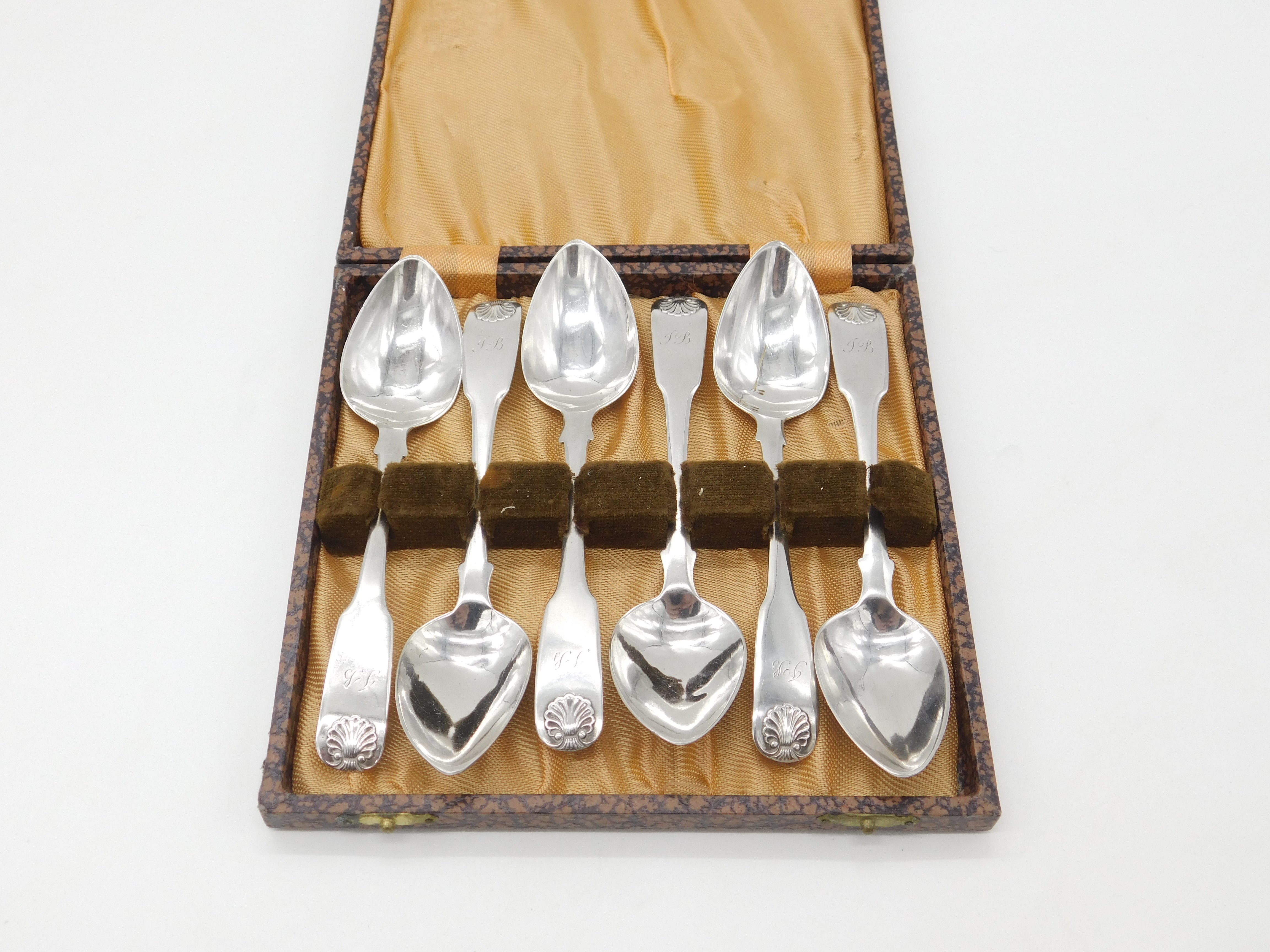 Set of Six Victorian Scottish Sterling Silver Spoons Antique 1870 Glasgow J.M