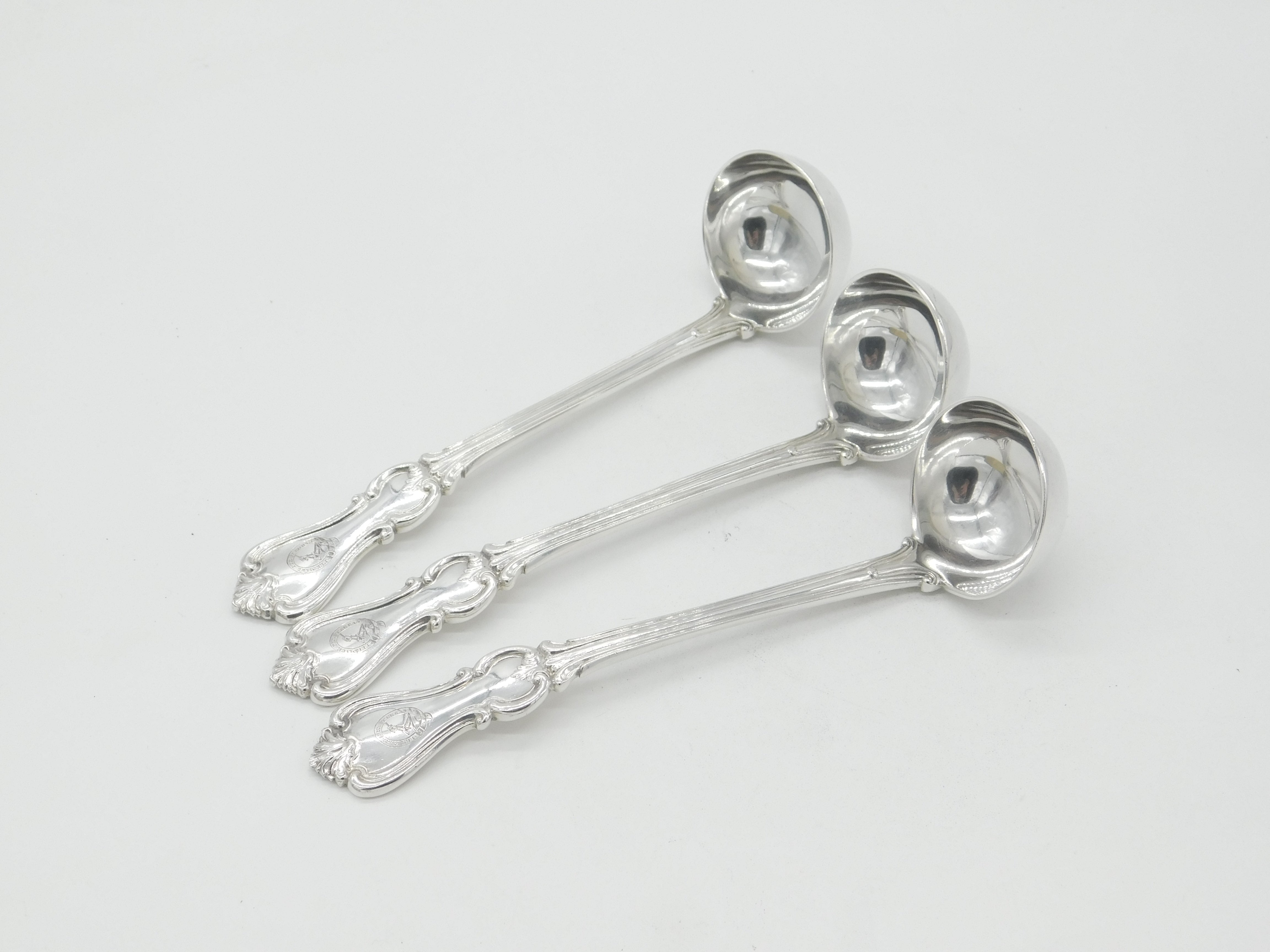Set of Victorian Sterling Silver Crested Soup Ladle Spoons 1842 London Antique