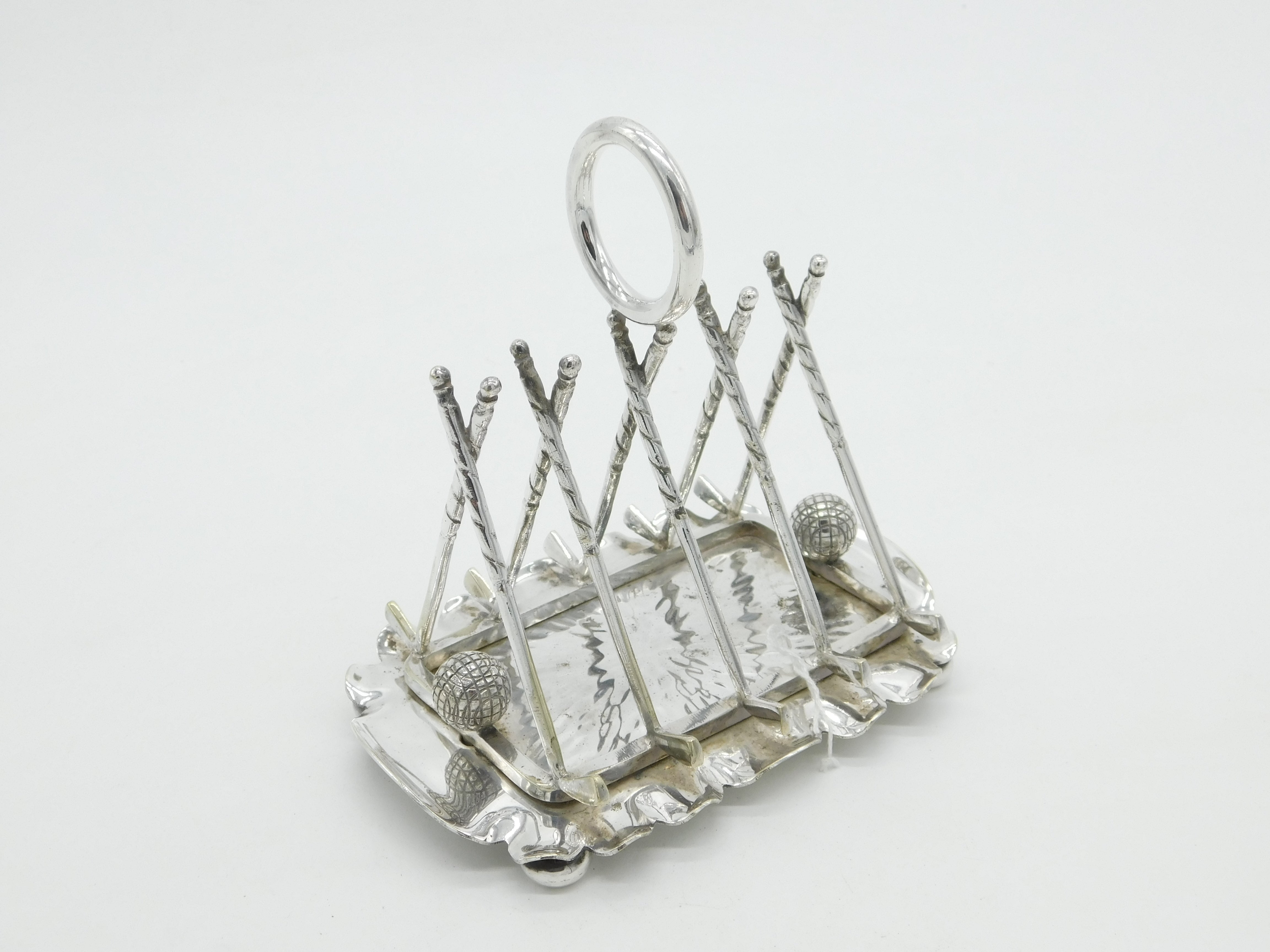 Silver Plated Novelty Golf Clubs & Balls Four Bar Toast Rack Antique c1920 Deco