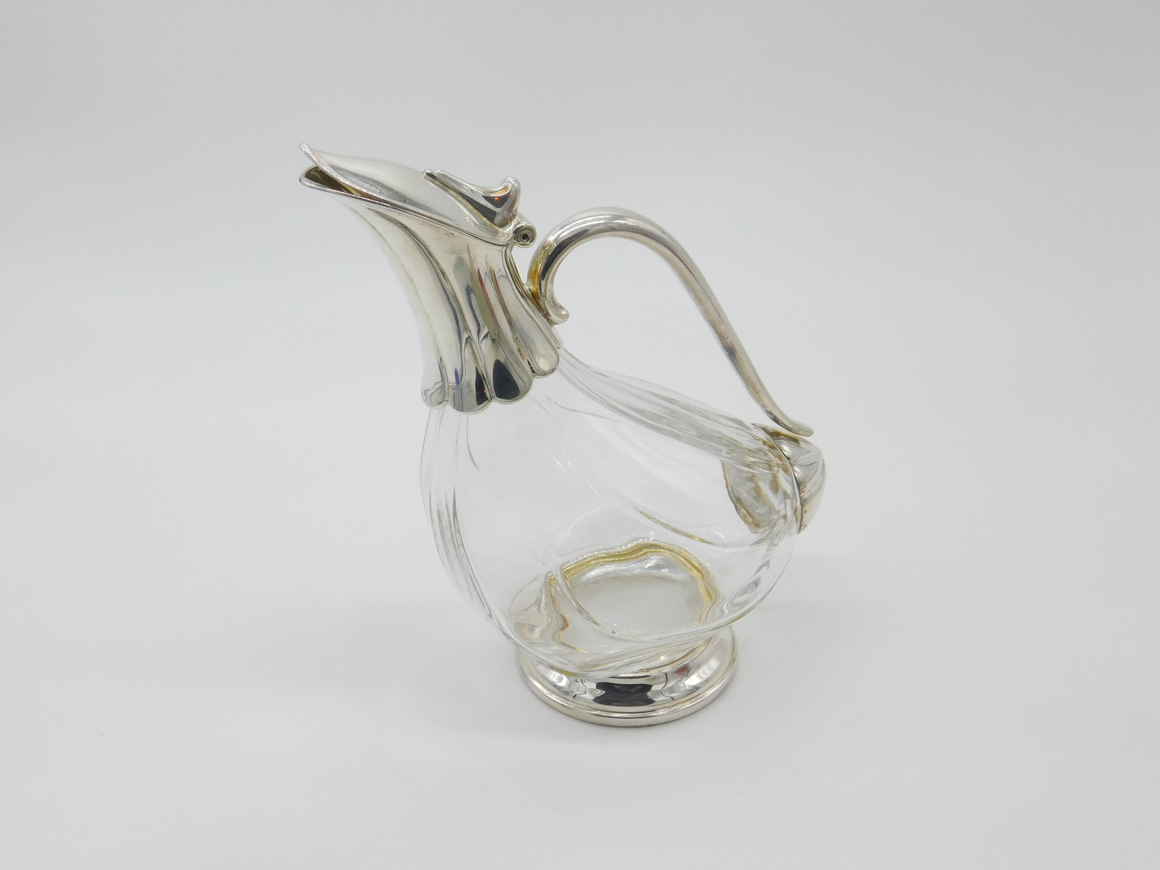 Silver Plated Moulded Glass Chicken Form Claret Wine Jug Vintage c1960