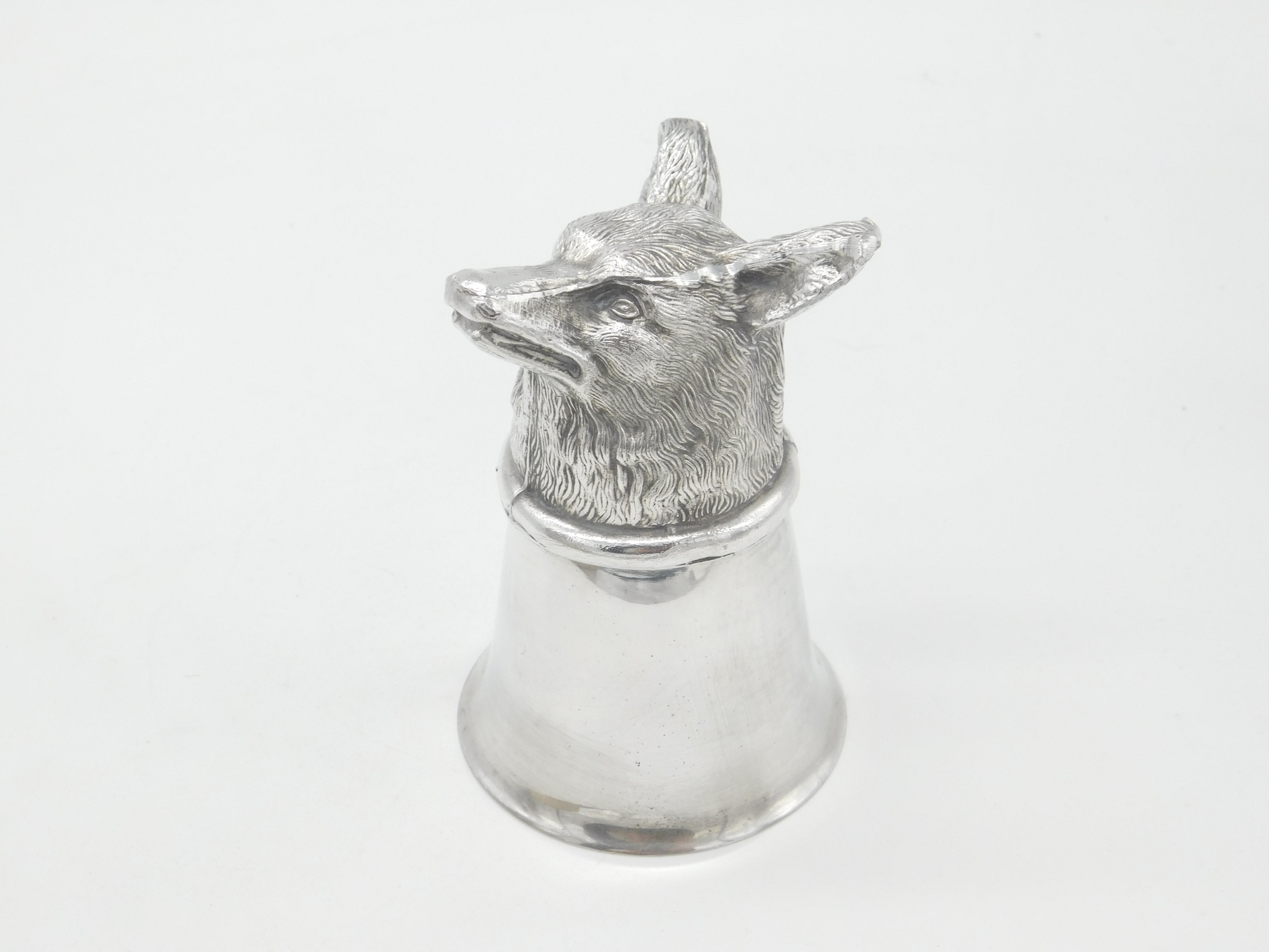 Silver Plated Fox Head Stirrup Cup Shot Cup Antique c1930 Art Deco