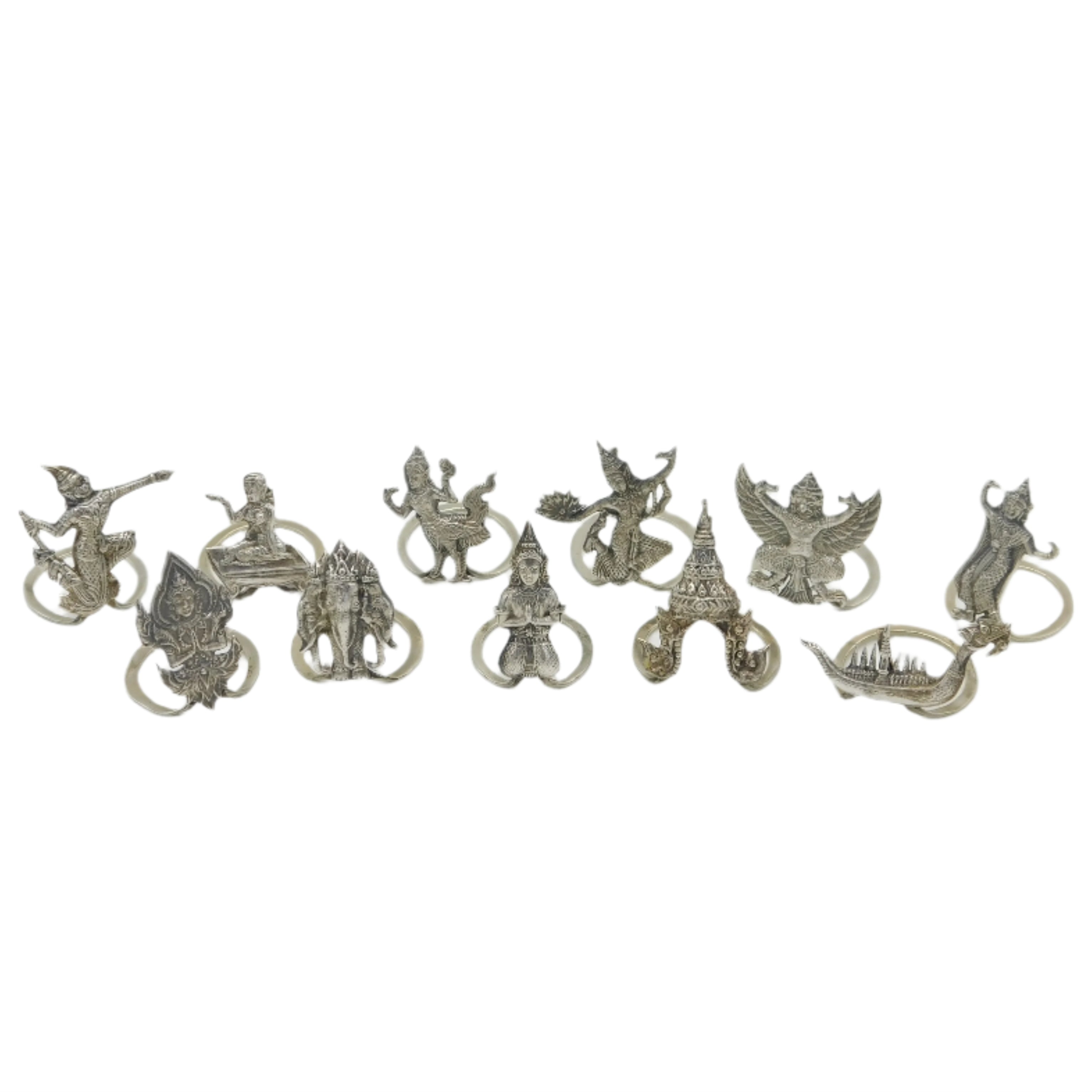 Siam Set of Sterling Silver God, Boat & Temple Form Place Settings Antique c1920 Art Deco