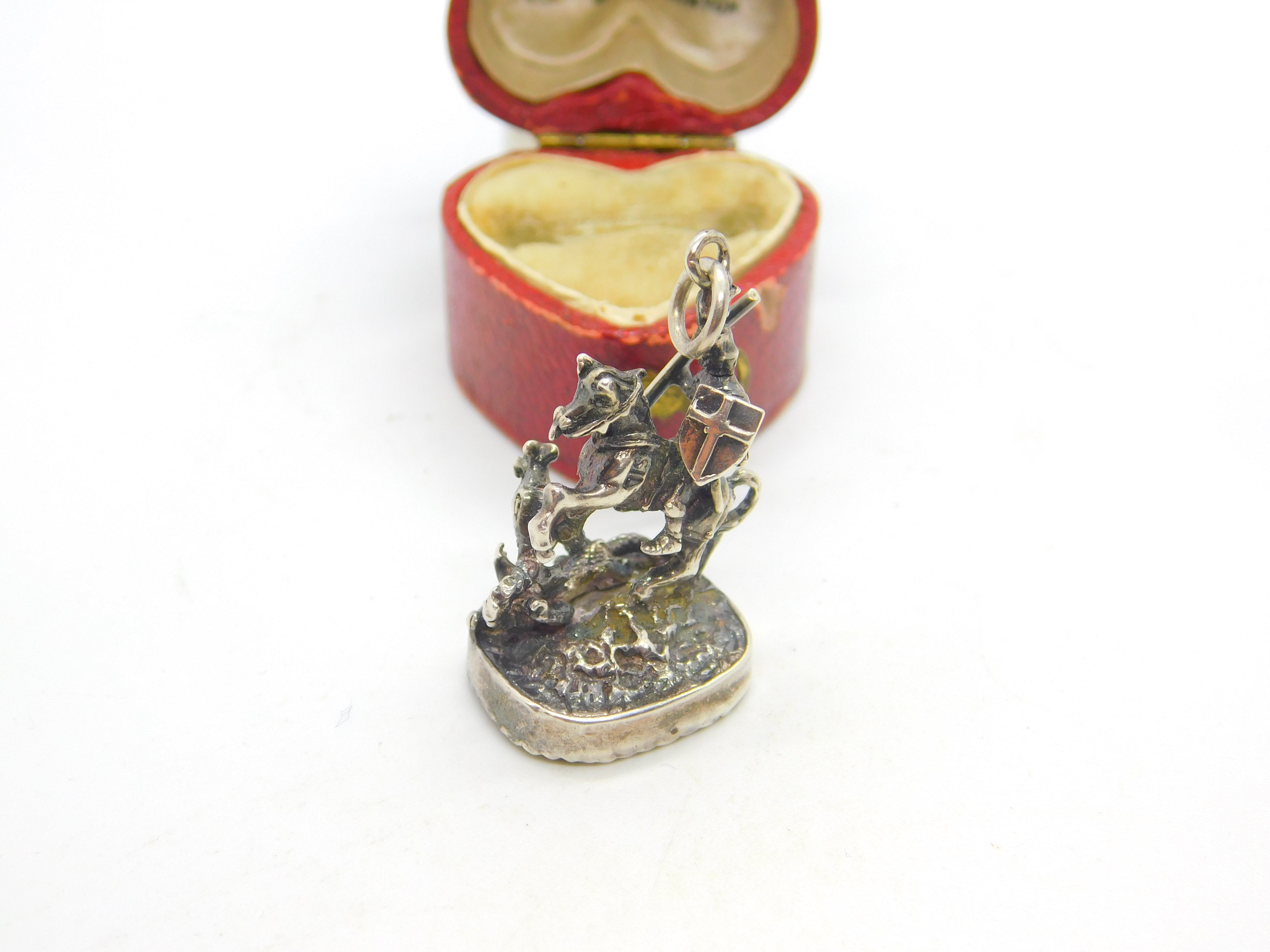 St George Slaying Dragon Sterling Silver Intaglio Centurion Seal Fob Antique