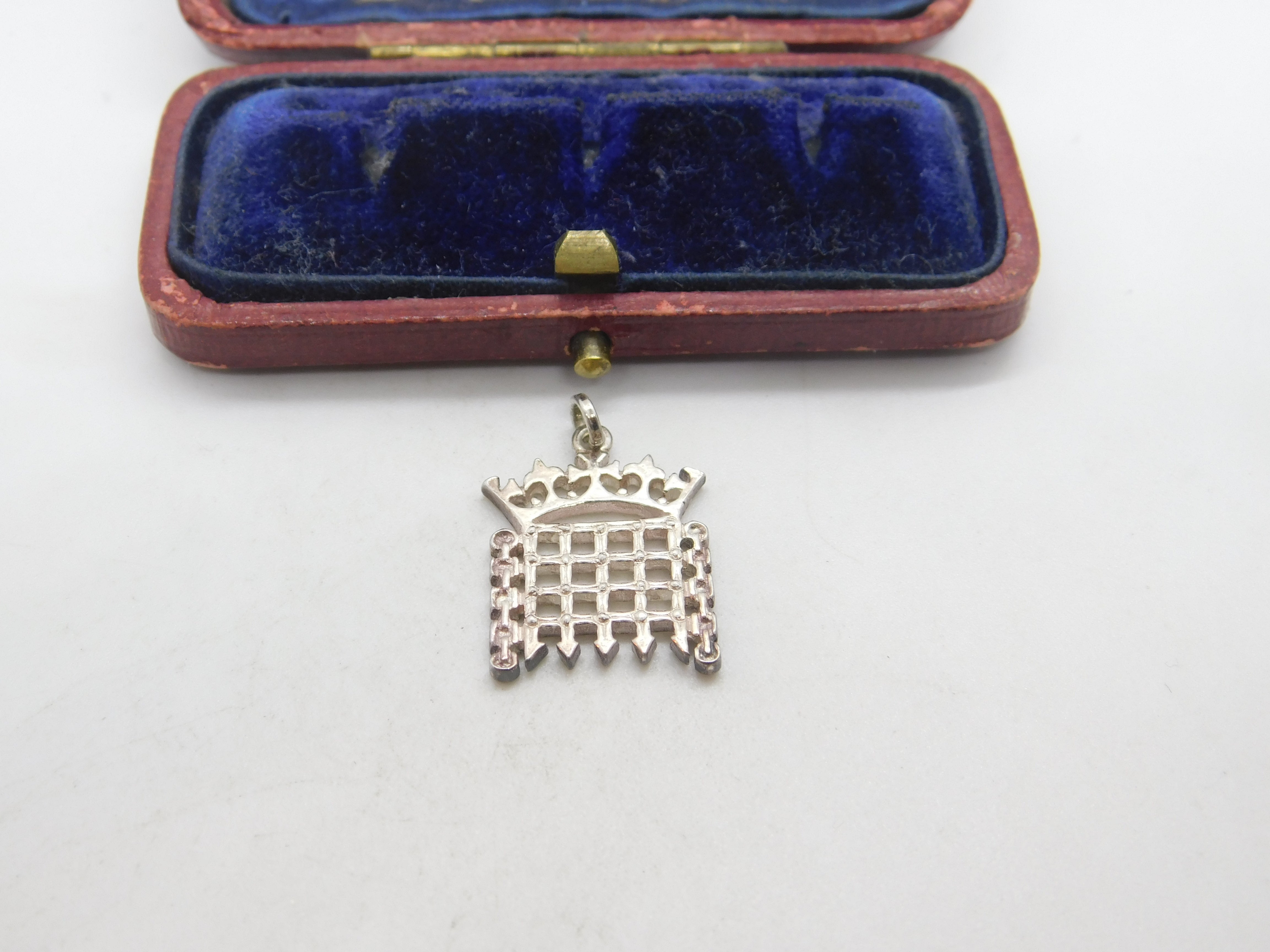 Sterling Silver 'Crowned Portcullis' British Parliament Symbol Charm Vintage