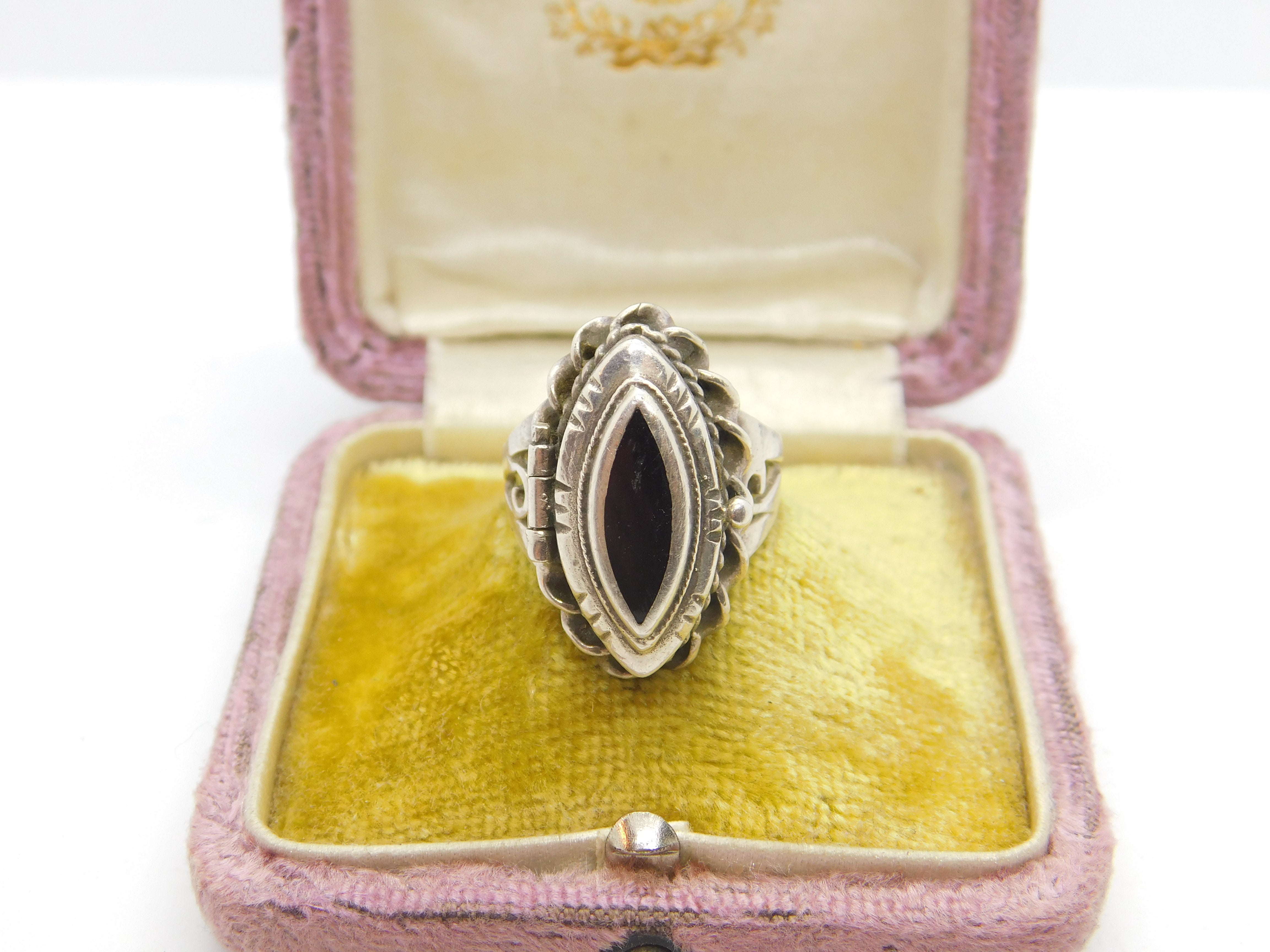 Sterling Silver & Onyx Set Victorian Style Poison Locket Ring Vintage c1970