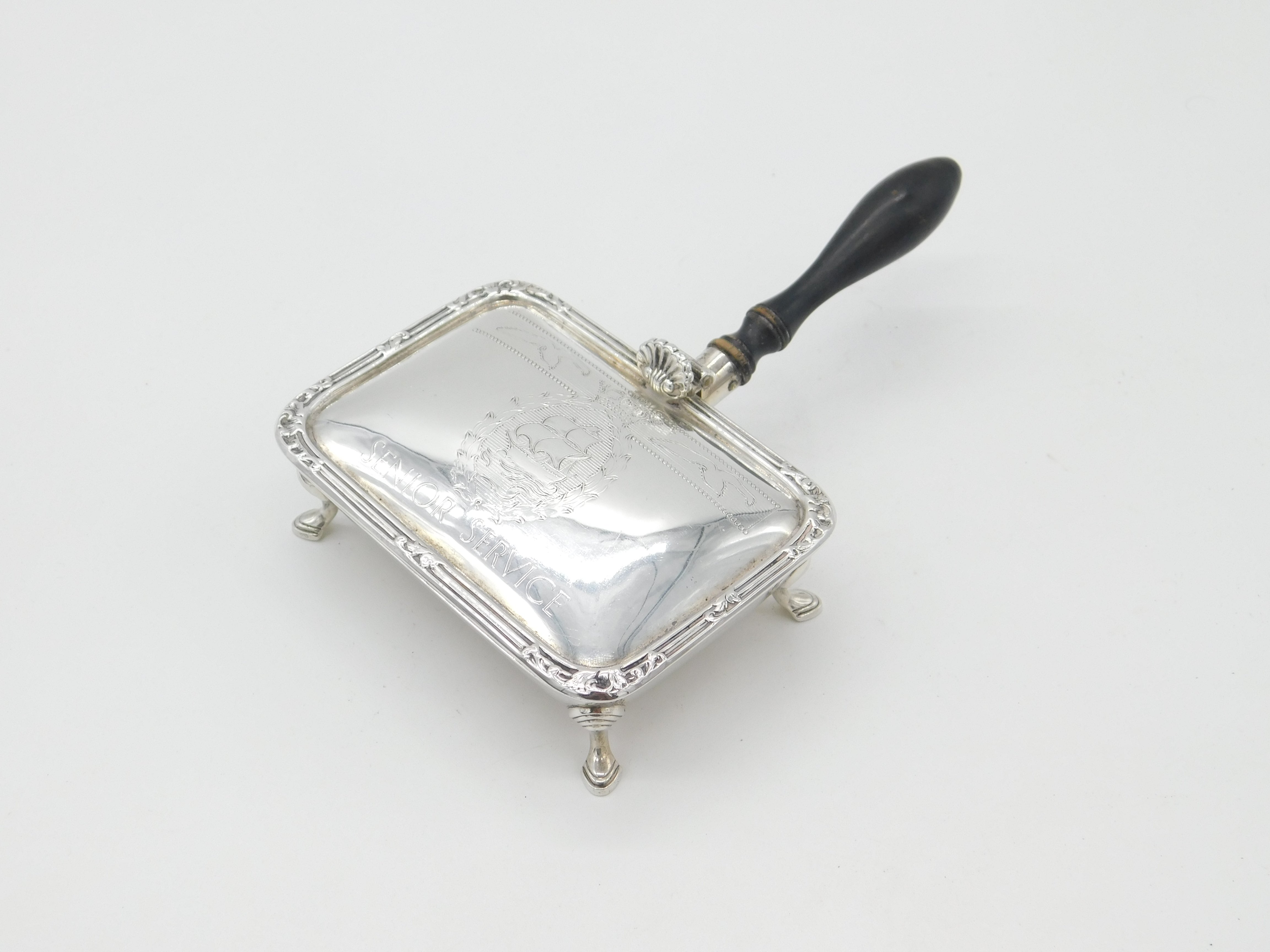Sterling Silver & Wooden 'Senior Service' Cigarette Ashtray 1959 Mid-Century