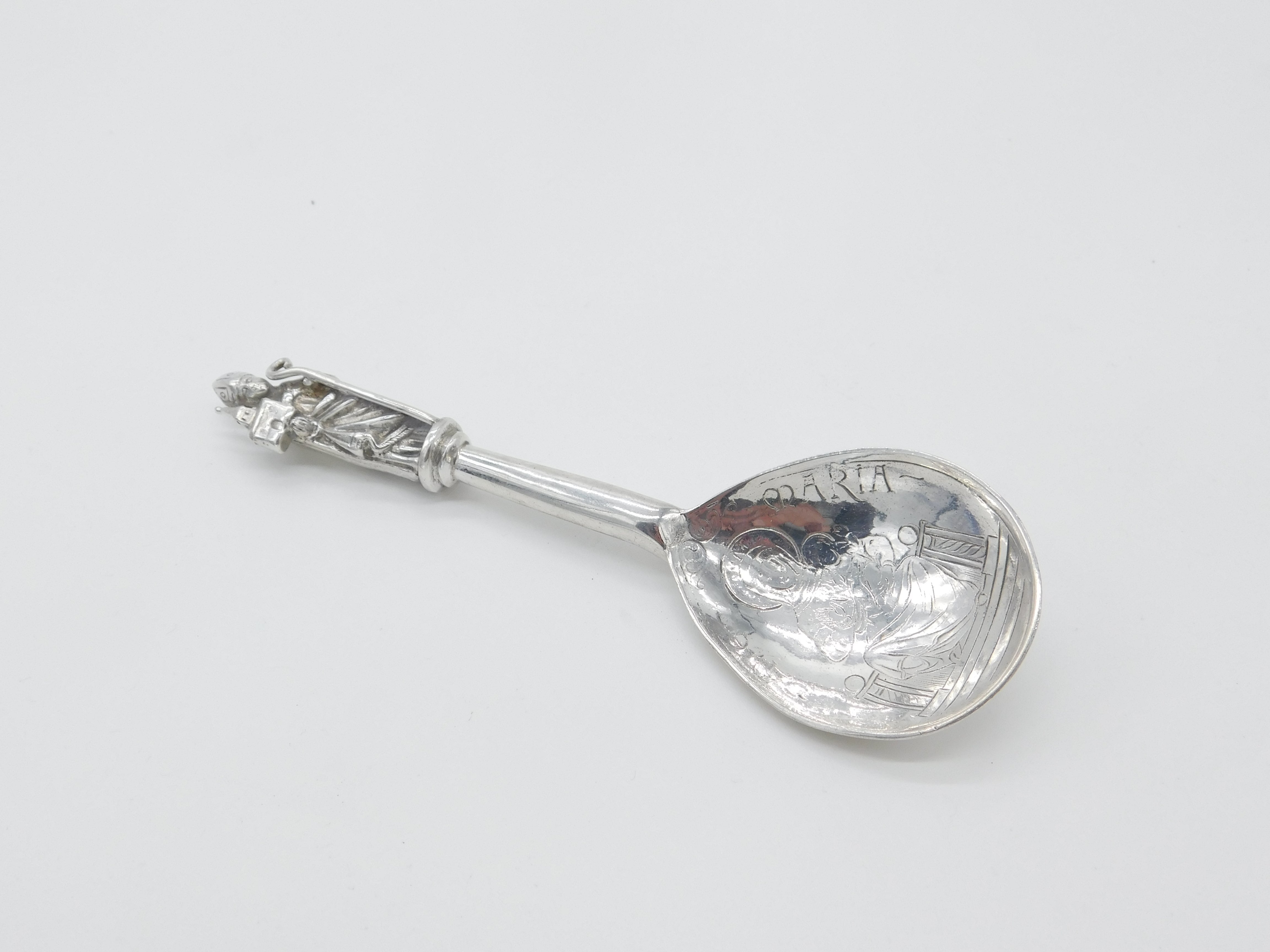 Sterling Silver 'Ave Maria' Apostle Picture Bowl Spoon Antique 1902 Chester