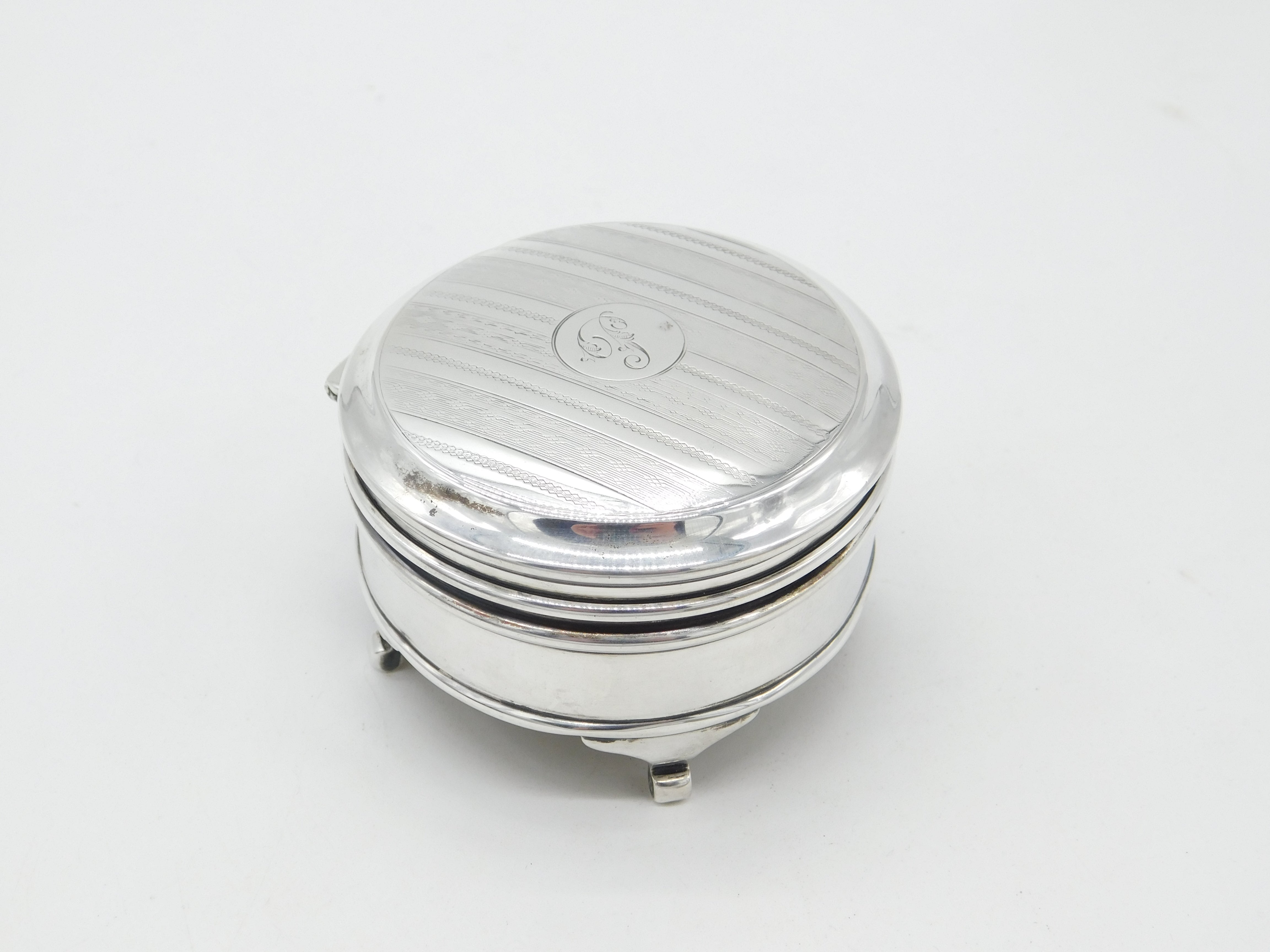 Sterling Silver 'P' Initial Circular Jewellery Box Antique 1918 Birmingham Deco