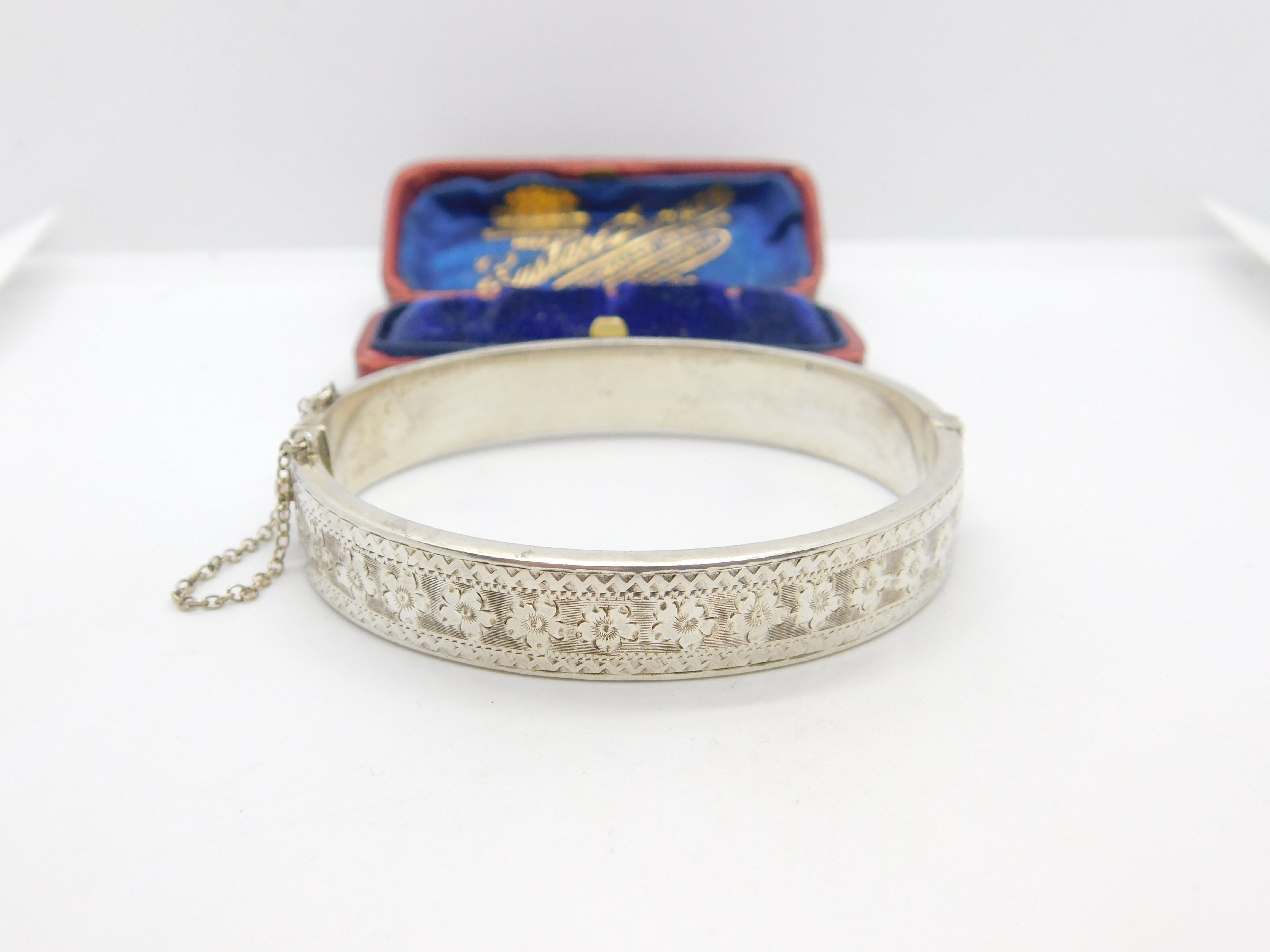 Sterling Silver Aesthetic Floral Cuff Bangle 1939 Antique Birmingham Deco