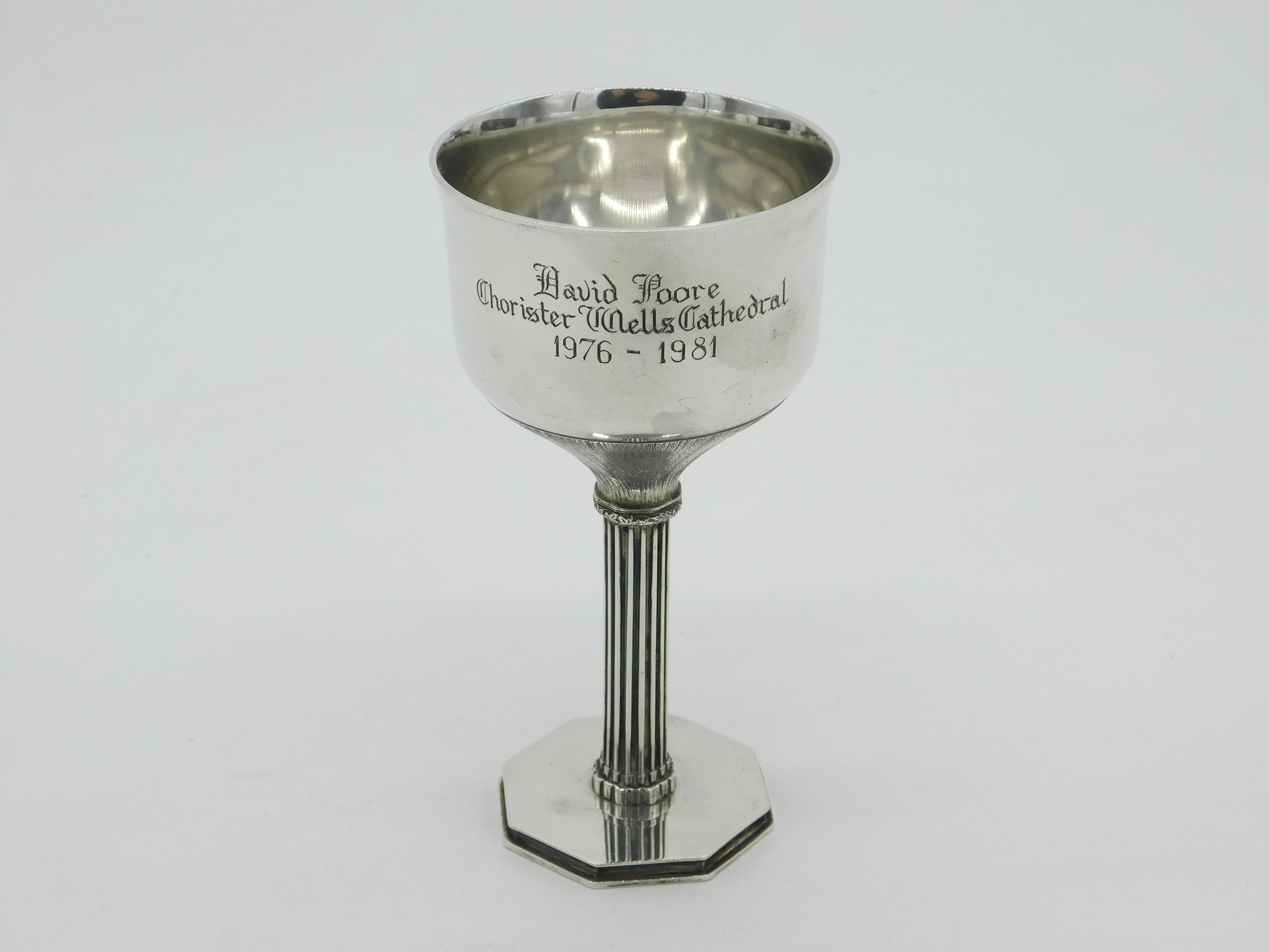 Sterling Silver Column Form Wine Goblet 'David Poore, Wells Cathedral' Vintage