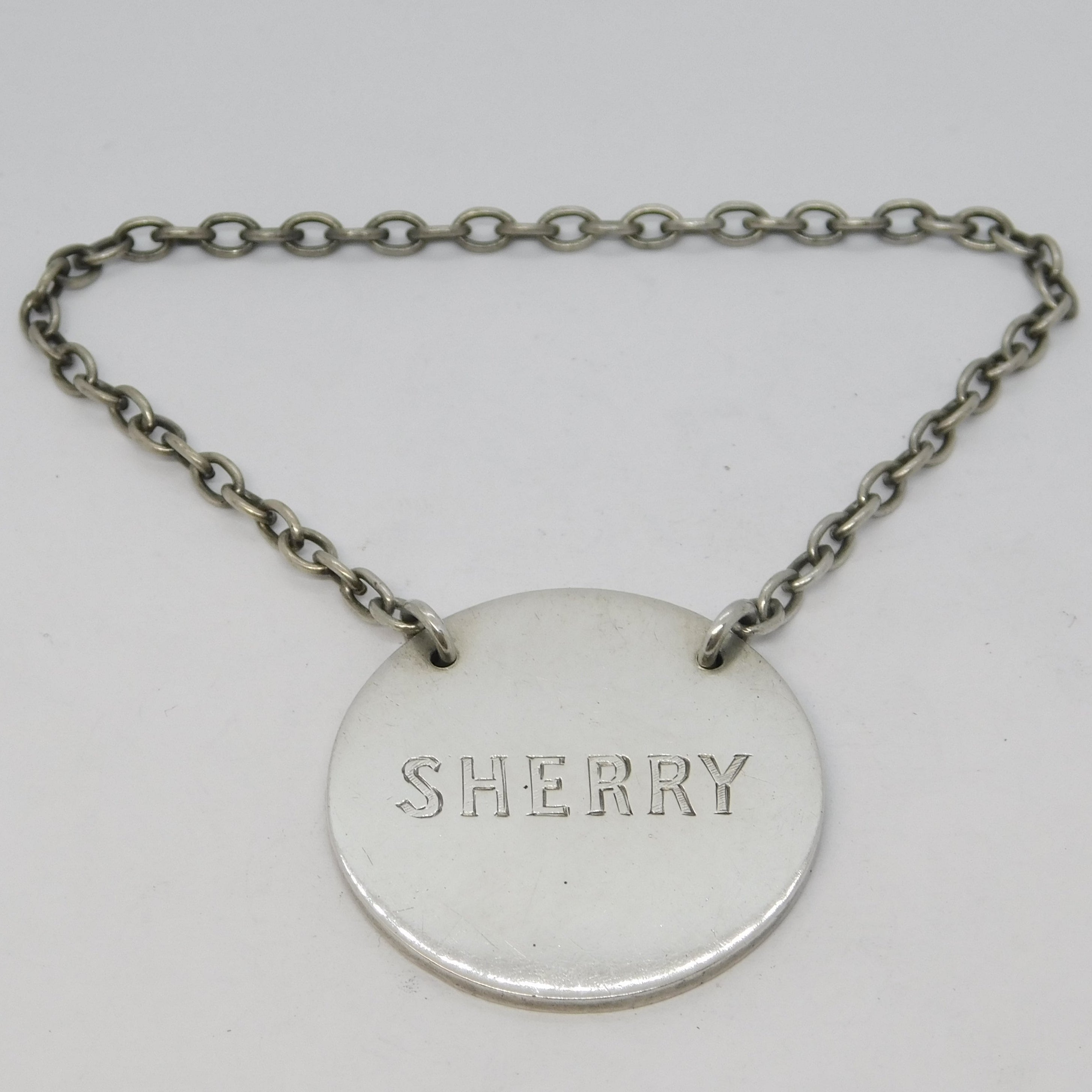 Sterling Silver Circular Sherry Decanter Label Antique 1935 Chester Art Deco