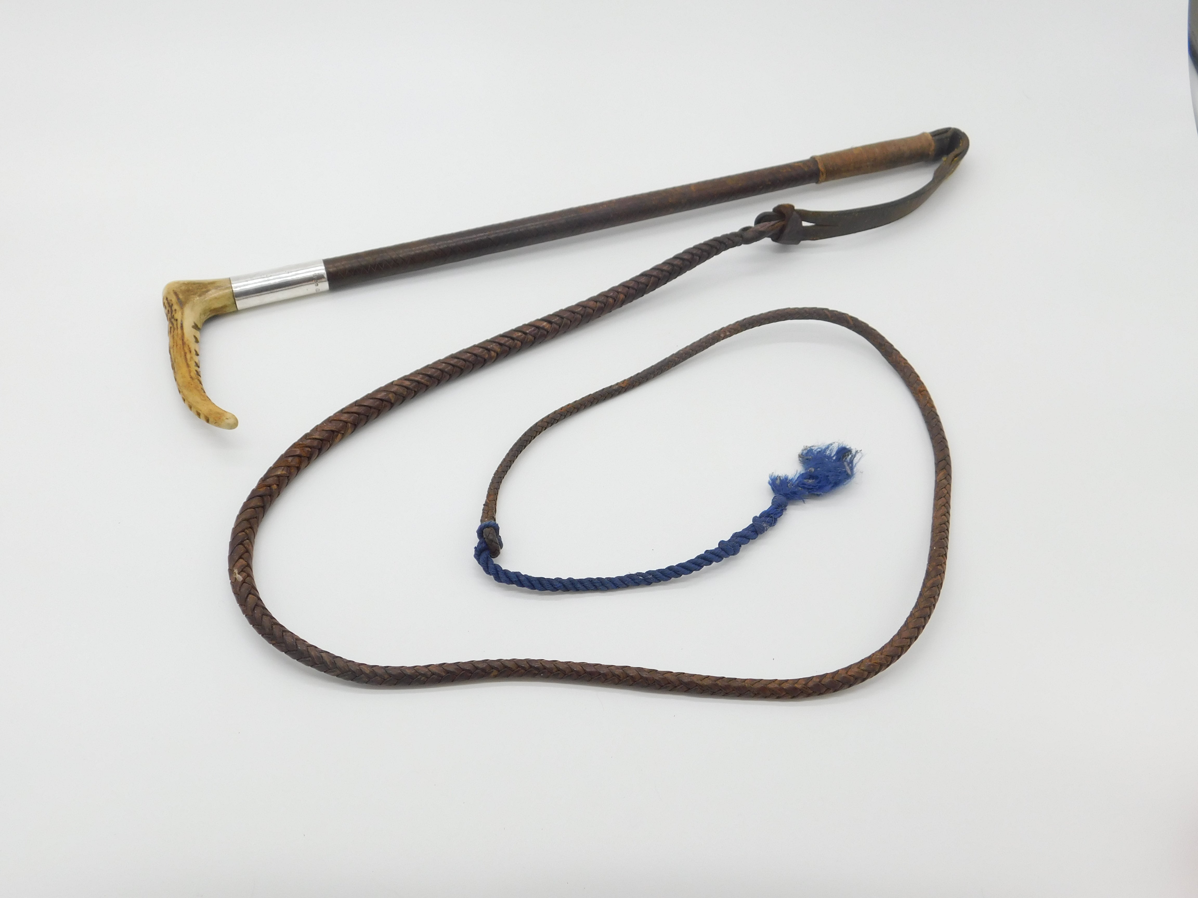 Sterling Silver Cuff Horn Handle Leather Hunting Crop Whip Antique 1940 Deco Birmingham
