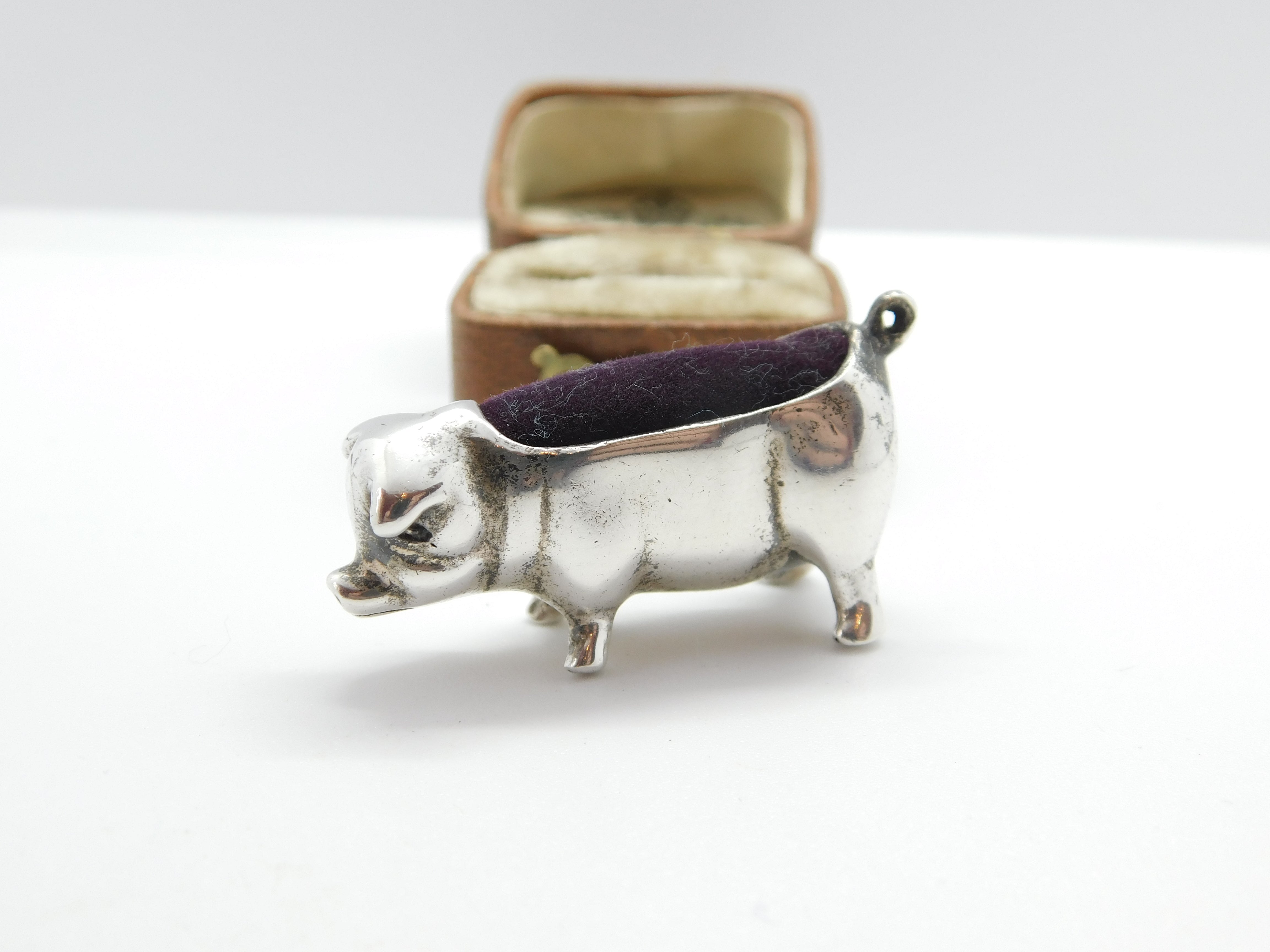 Sterling Silver Edwardian Style Pig Pin Cushion Vintage c1980