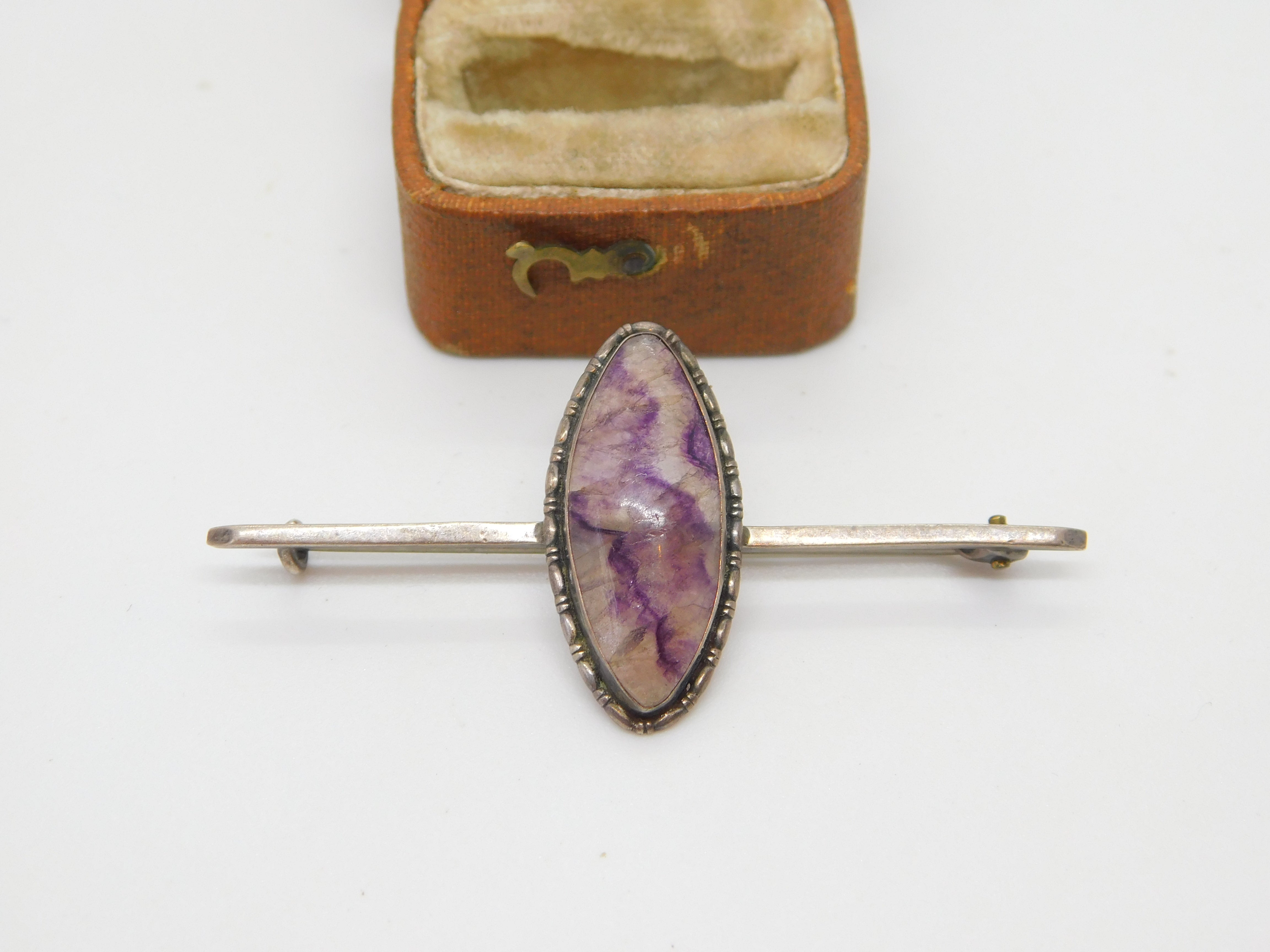 Sterling Silver Derbyshire Blue John Bar Brooch Antique c1930 Art Deco