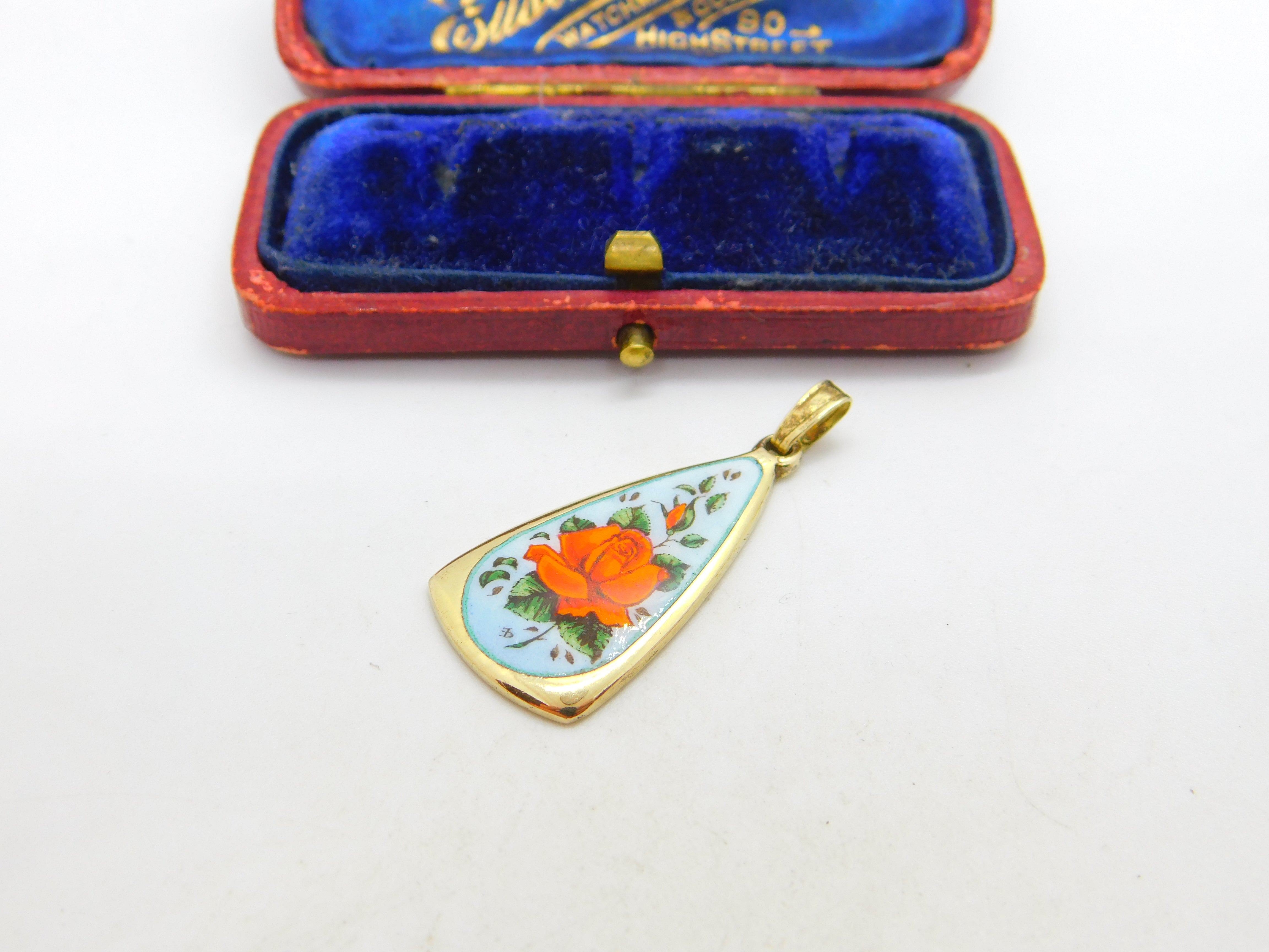 Sterling Silver Gilt Rose Flower Enamel Drop Pendant 1988 Birmingham