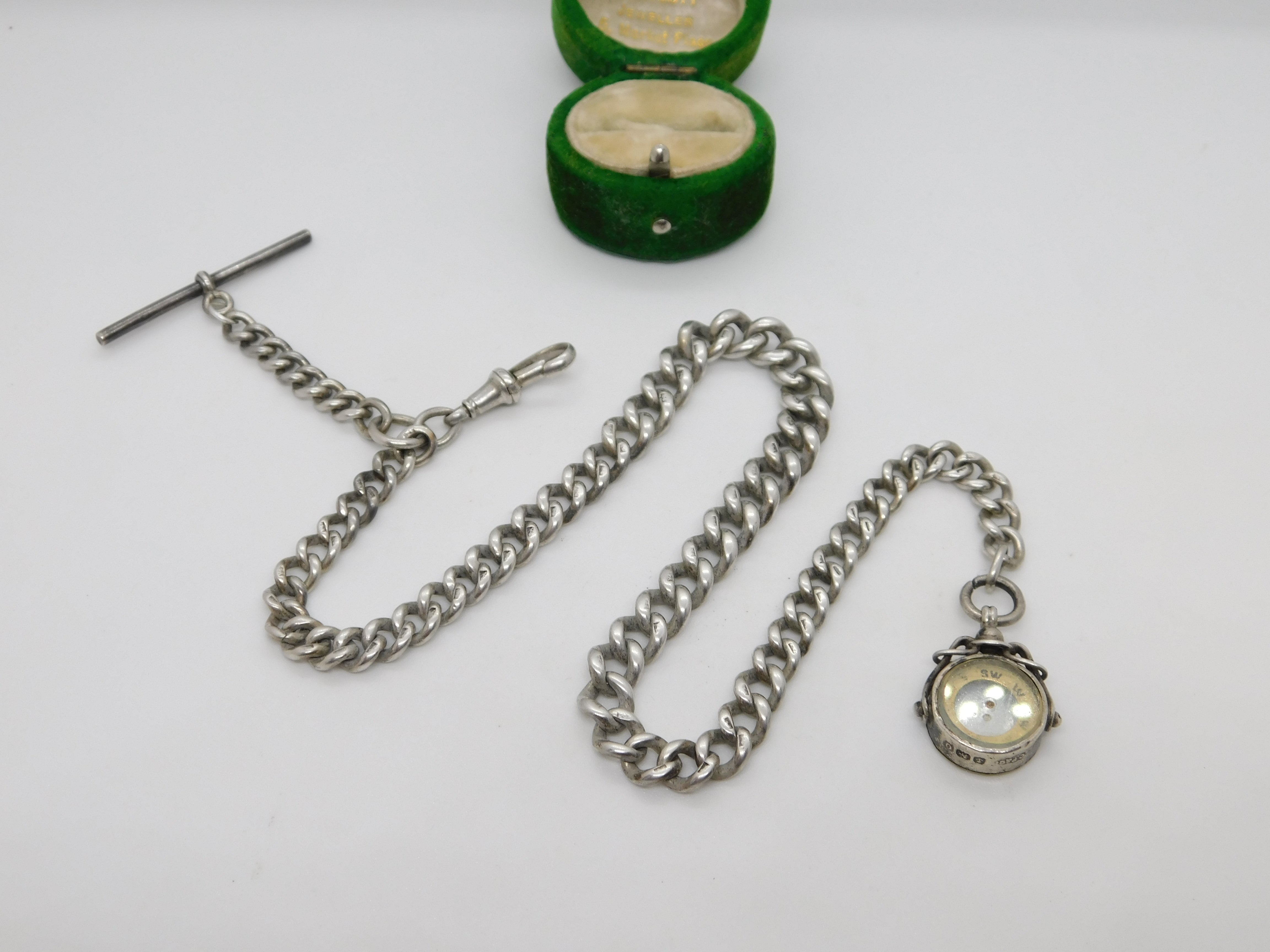 Sterling Silver Graduating Albert Watch Chain 1912 Art Deco with Fob Birmingham