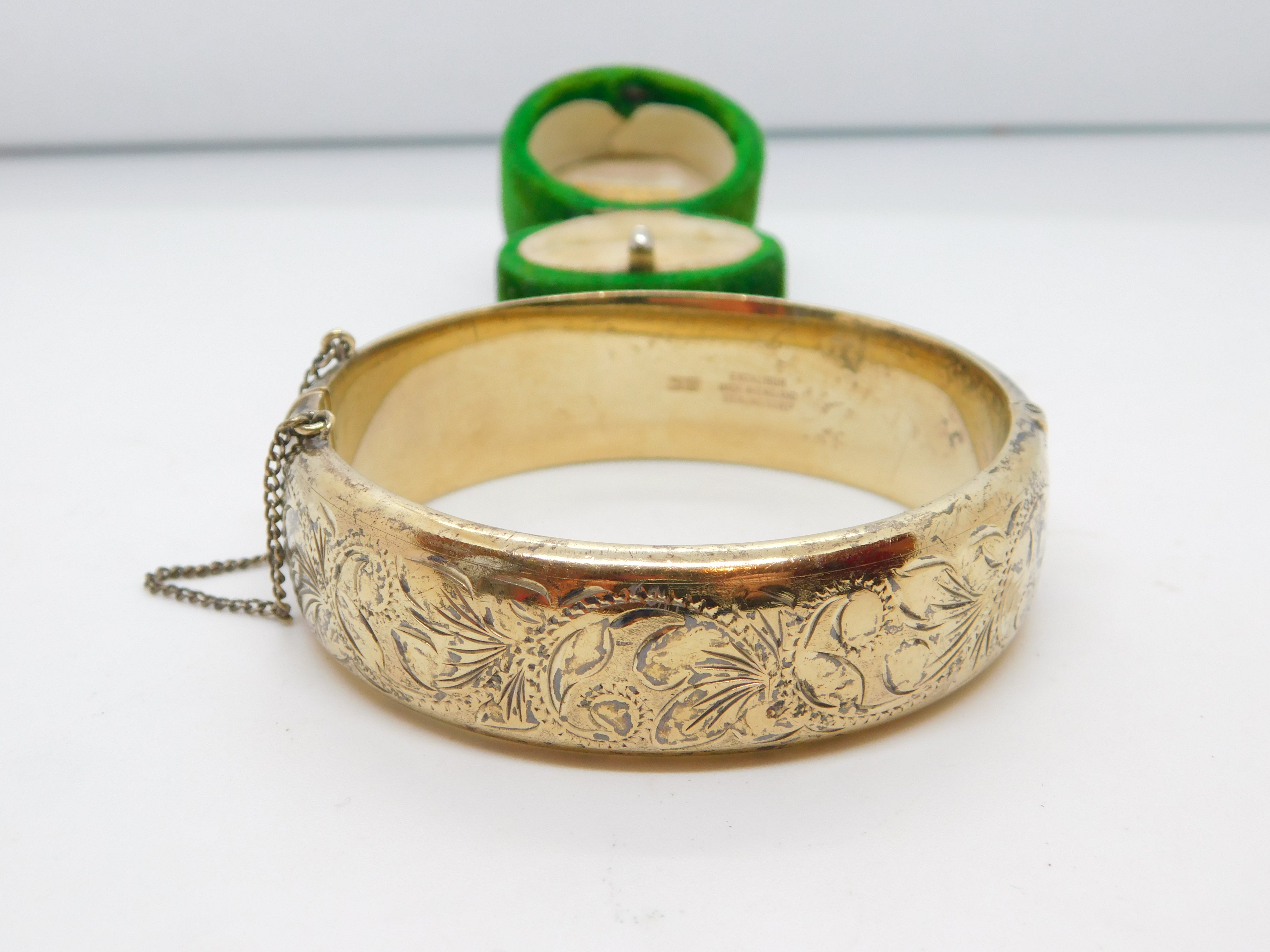 Sterling Silver Gilt Victorian Style Floral Pattern Cuff Bangle Bracelet Vintage 1969