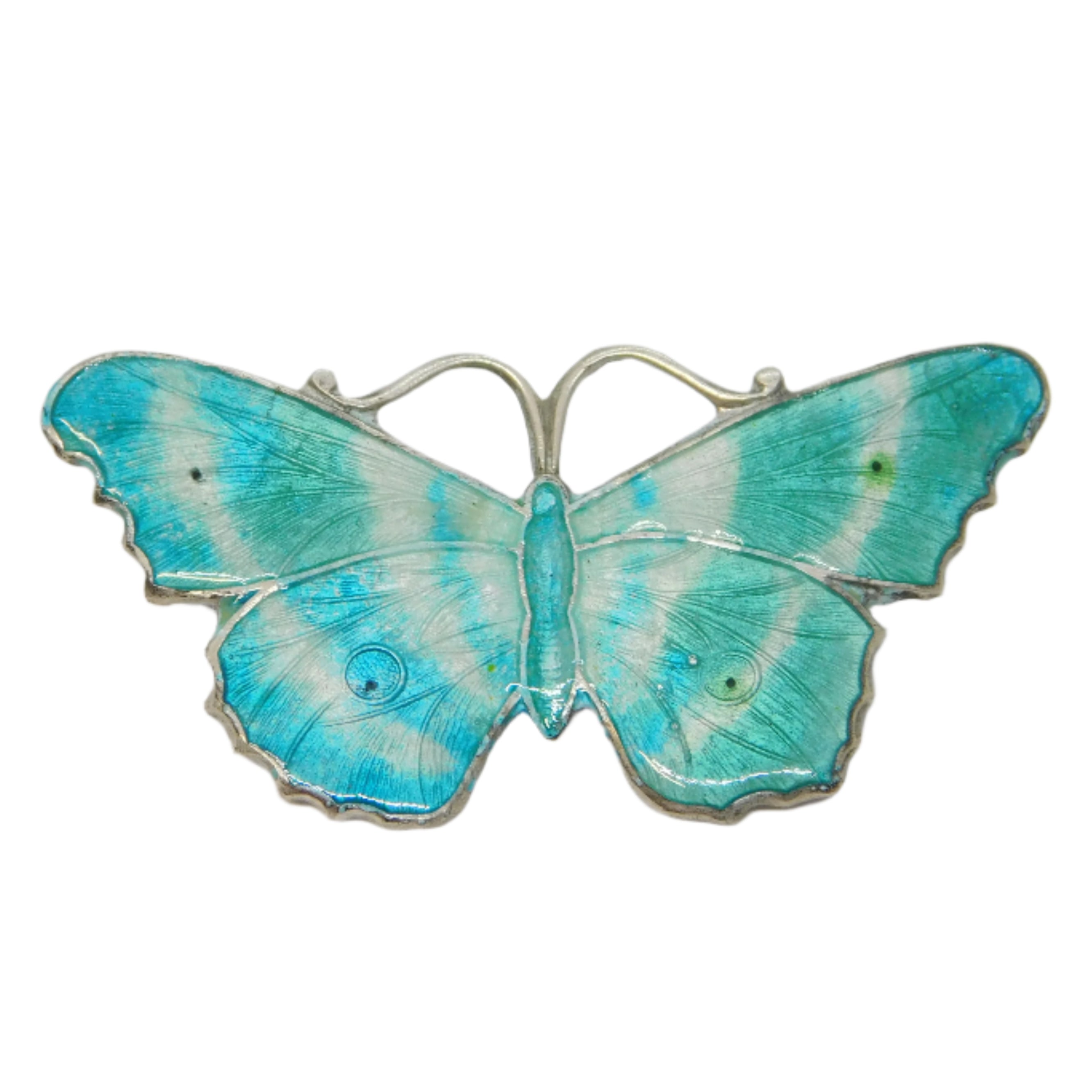 Sterling Silver Guilloche Enamel Butterfly Brooch Antique 1912 Birmingham