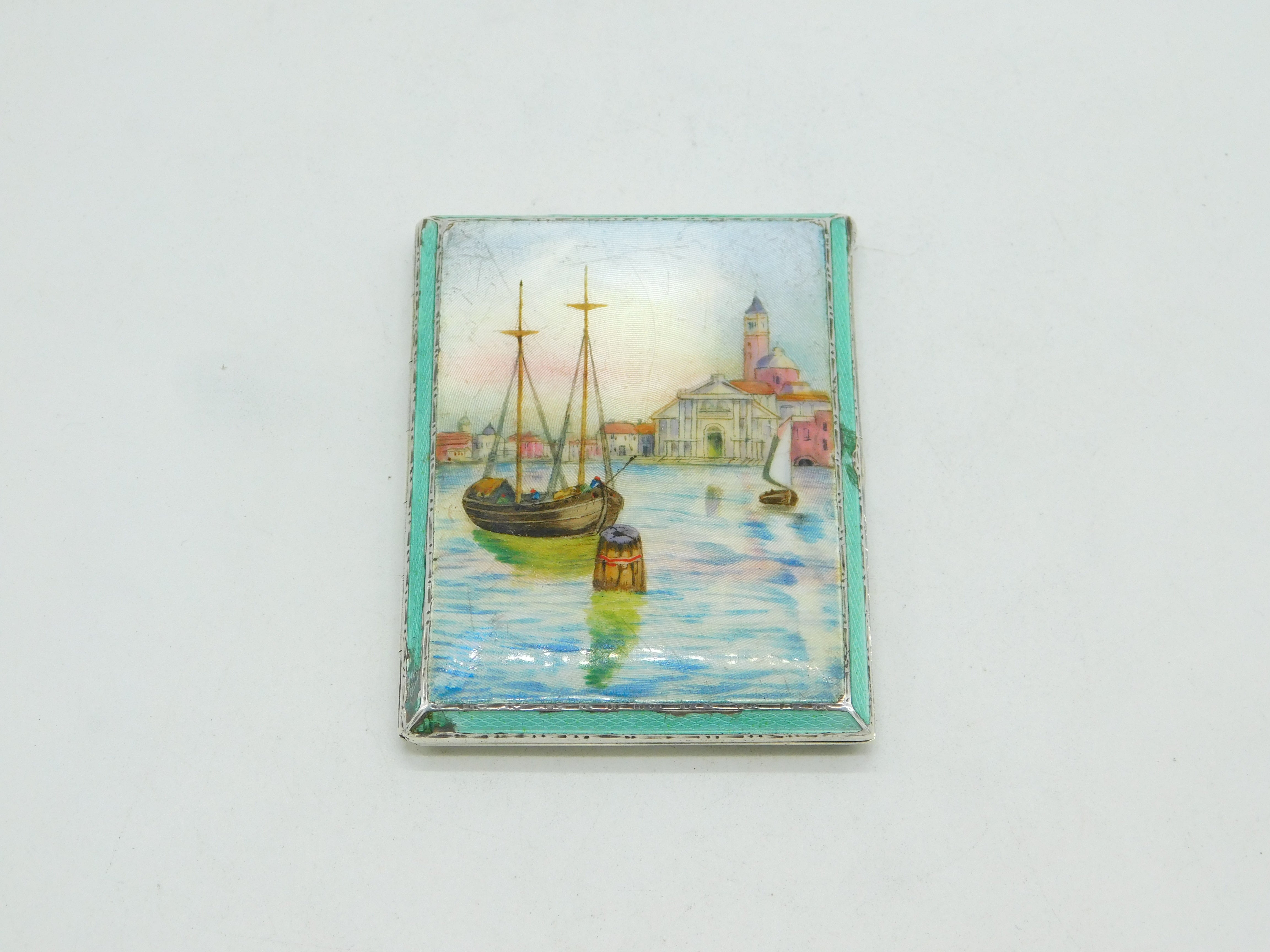 Sterling Silver Guilloche Enamel Venice Scene Cigarette Case 1931 Antique Deco