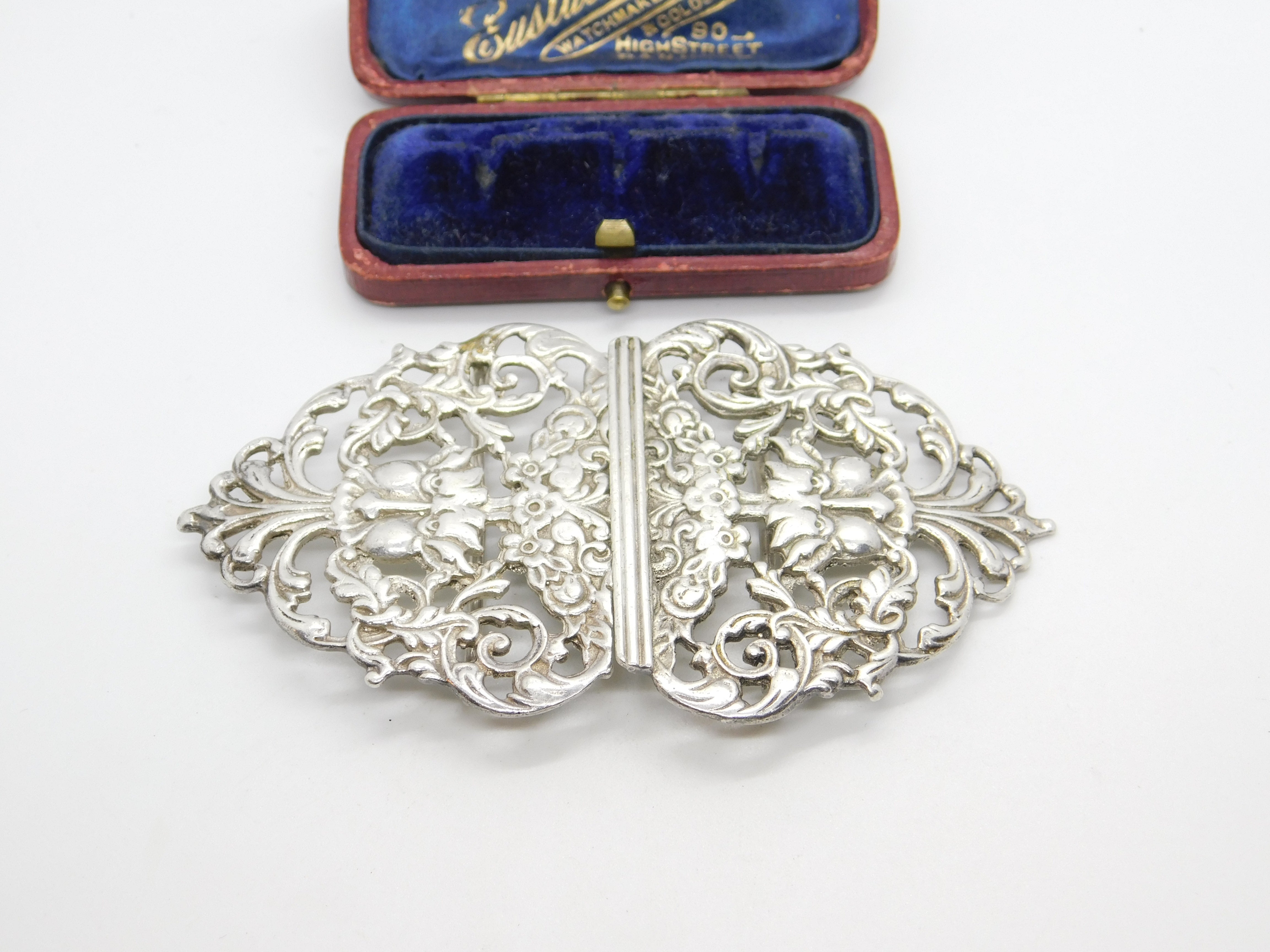 Sterling Silver Green Man Pattern Nurses Buckle Vintage 1973 Sheffield