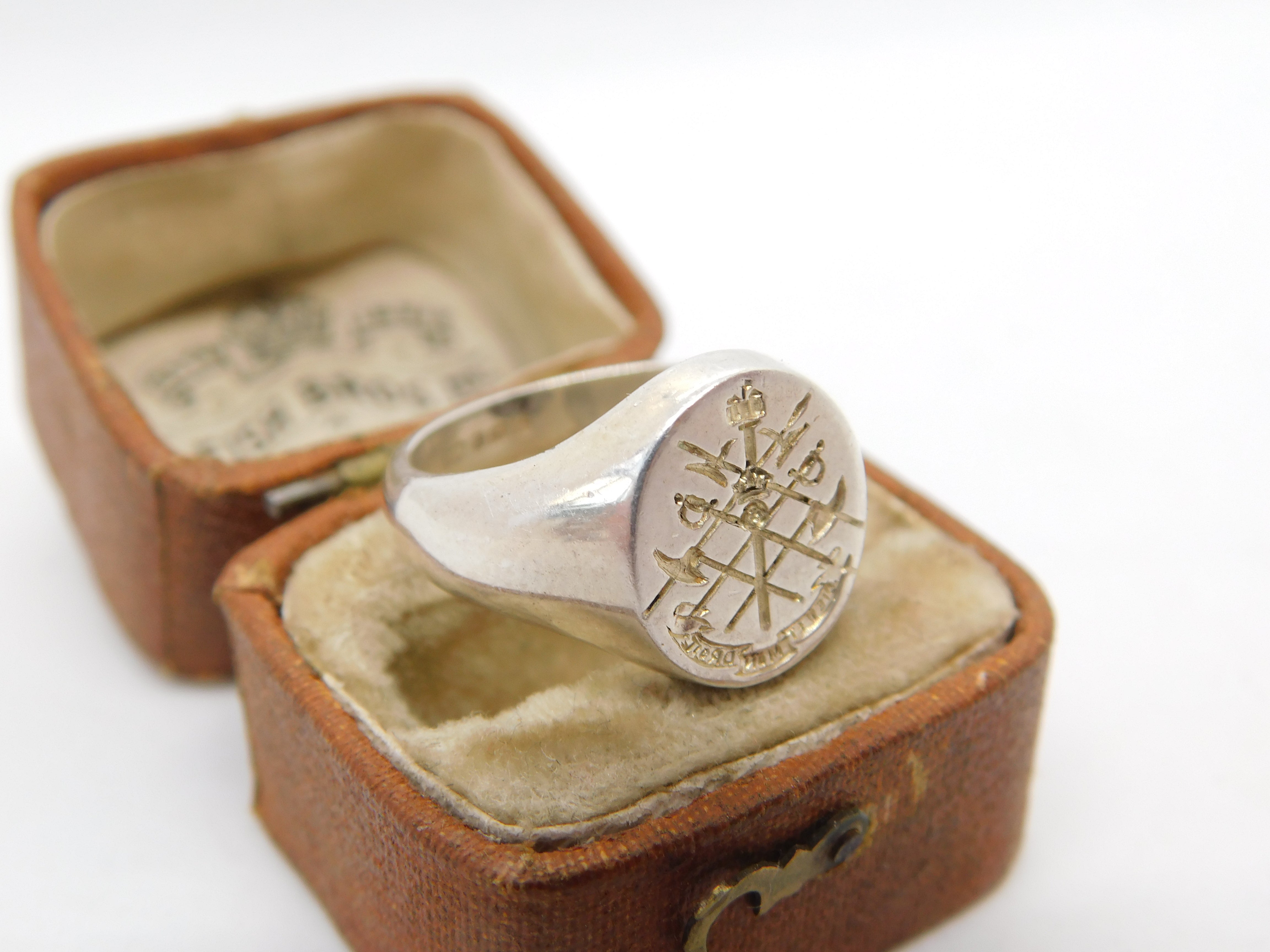 Sterling Silver Heraldic Intaglio Seal Signet Ring Vintage 1976 Birmingham