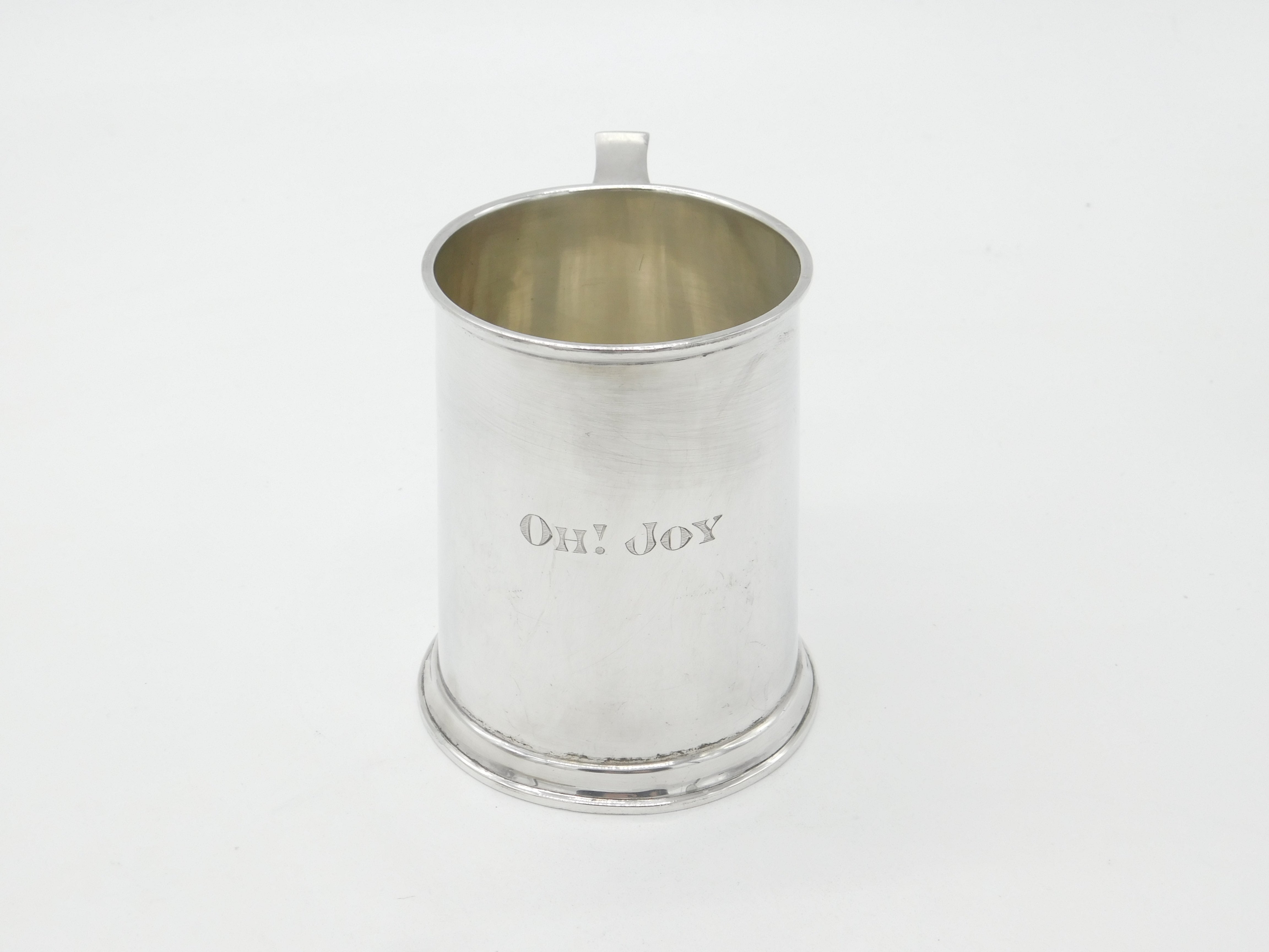 Sterling Silver Half-Pint Tankard 'Oh! Joy' Engraved 1914 Birmingham Antique