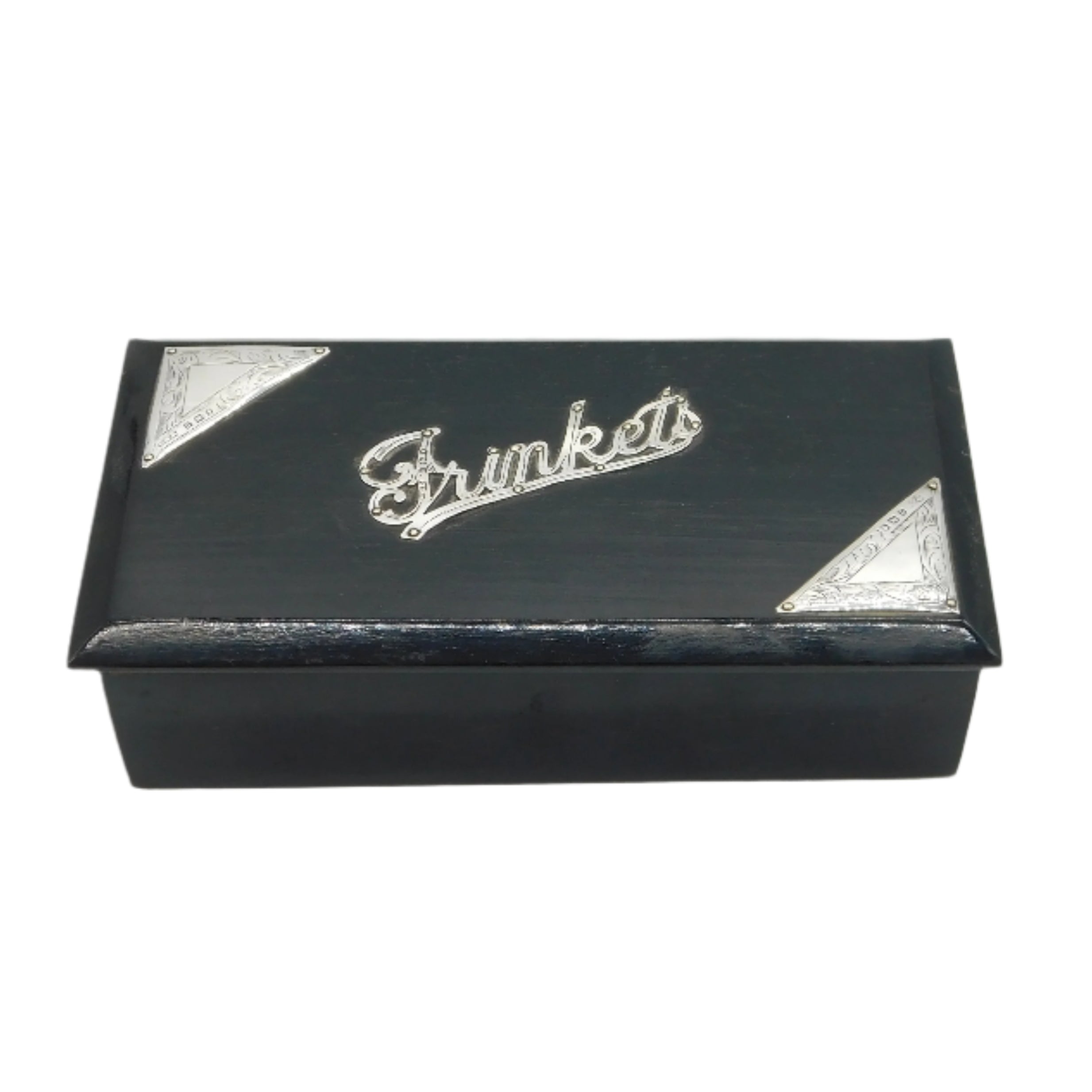 Sterling Silver Mounted Ebony Wood 'Trinkets' Jewellery Box Antique 1919 London
