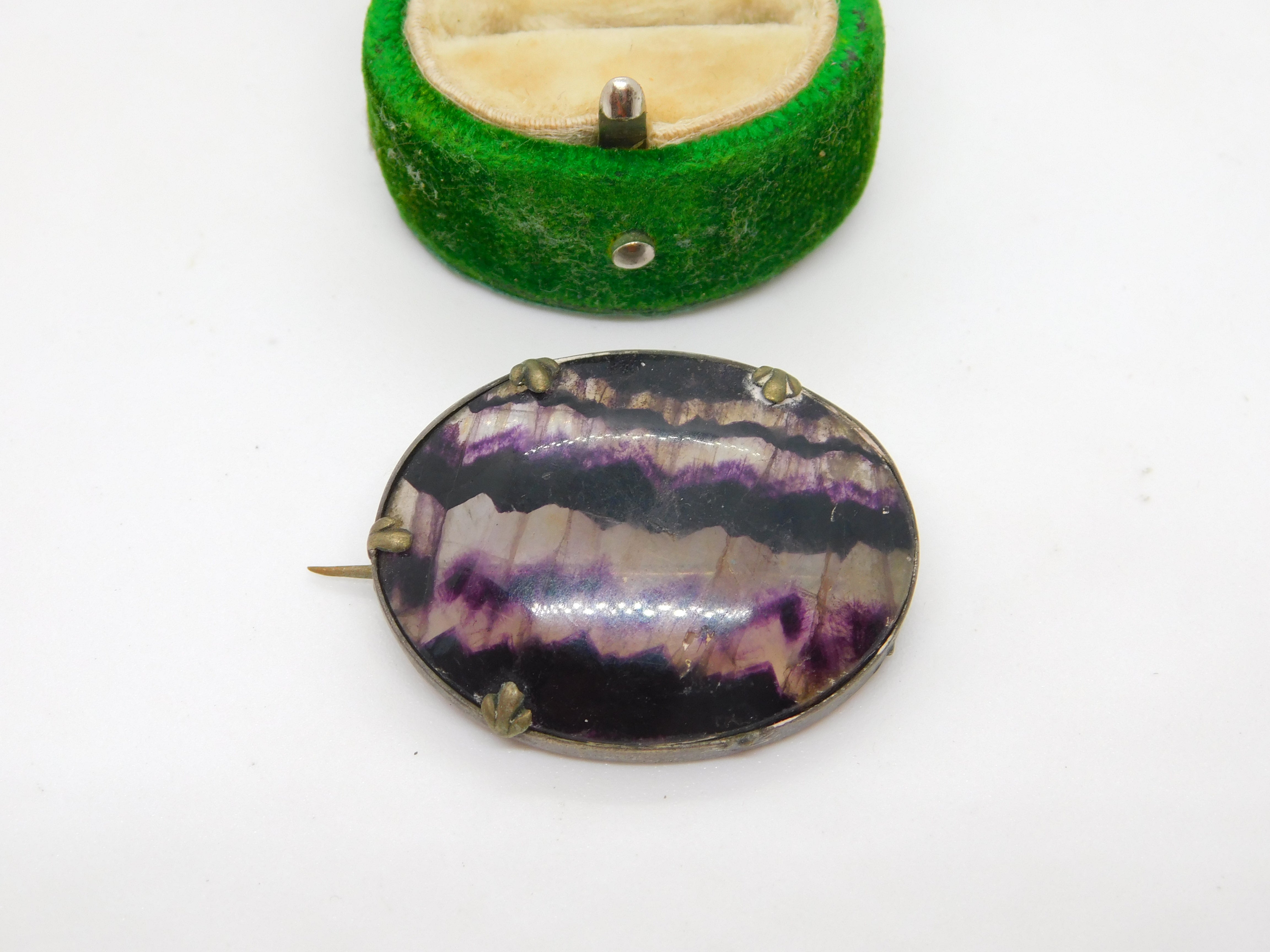 Sterling Silver Mounted Derbyshire Blue John Brooch Pin Antique c1920 Art Deco
