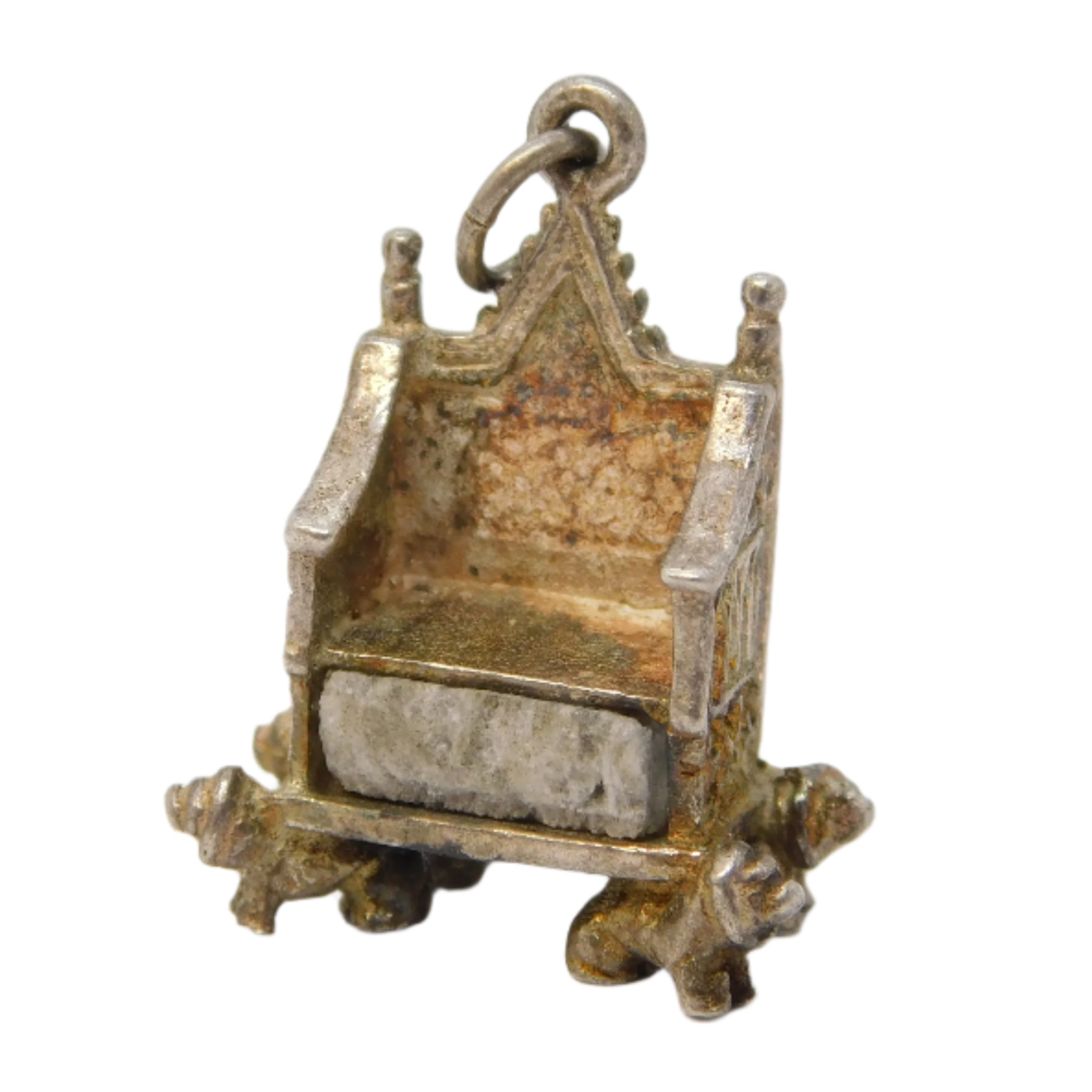 Sterling Silver Royal Coronation Throne with Stone of Scone Charm Vintage c1950