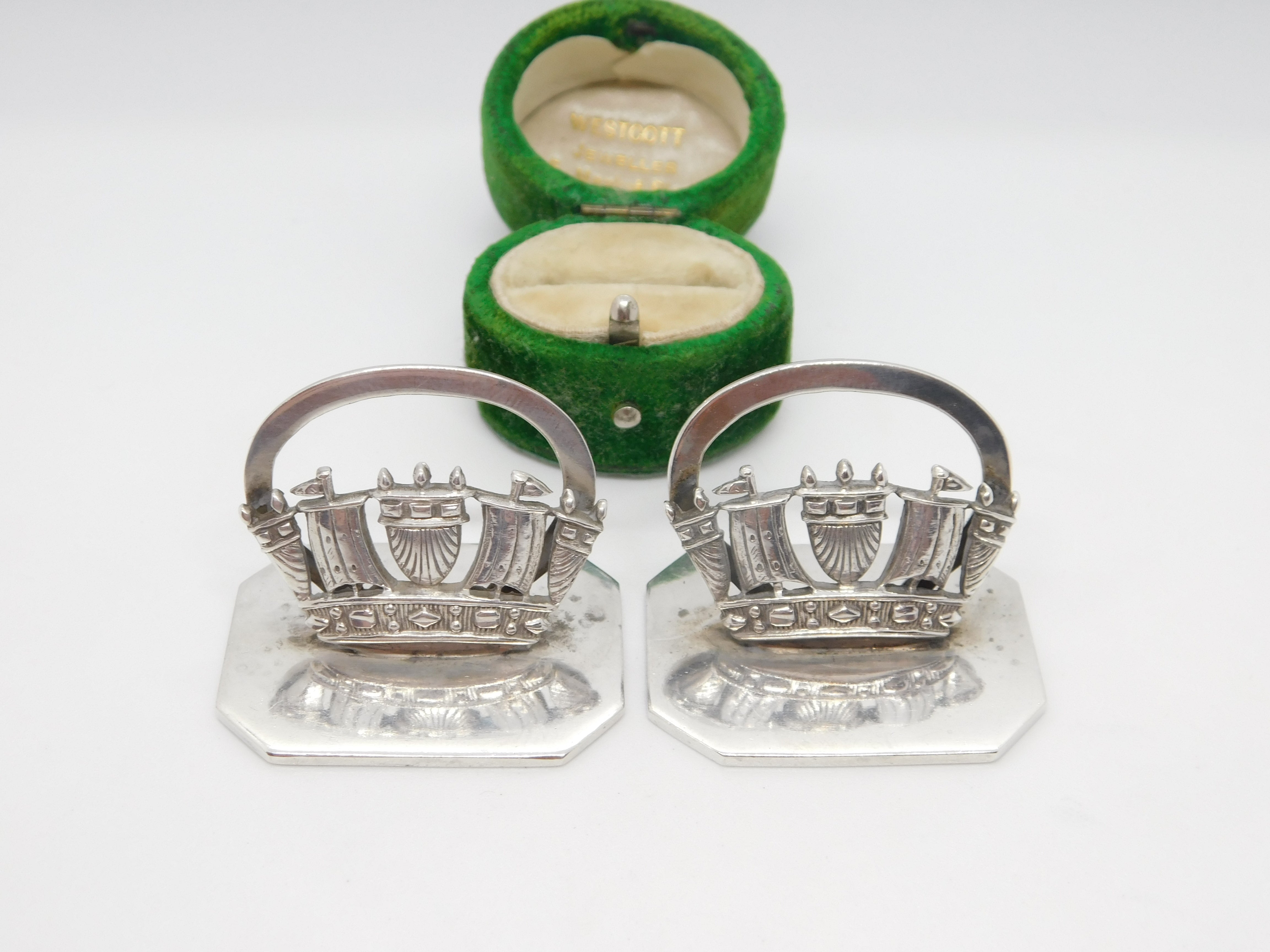 Sterling Silver Royal Navy Ship Menu or Place Holders 1920 Chester Antique