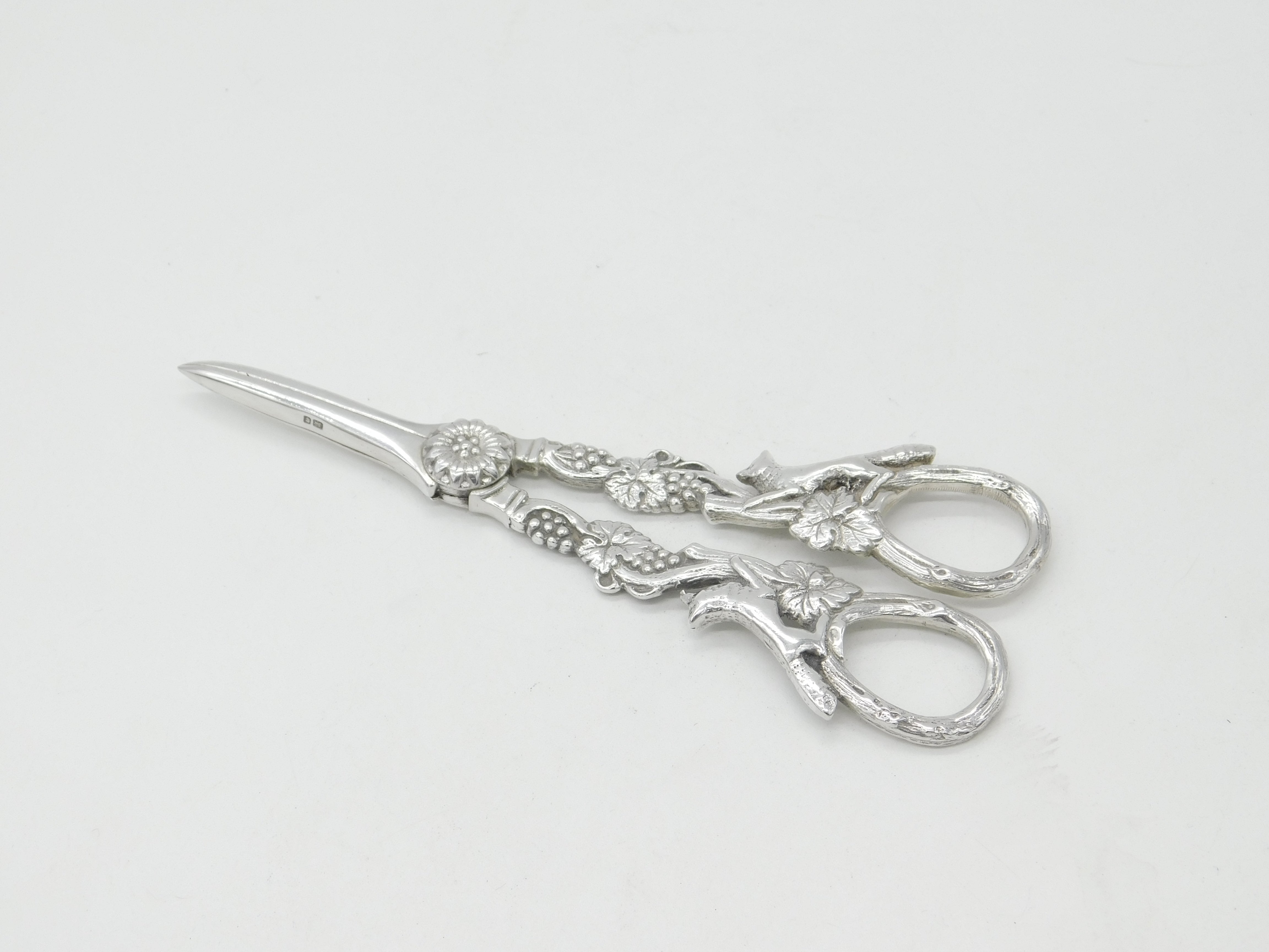 Sterling Silver Running Fox & Grape Pattern Grape Scissors 1967 London Vintage