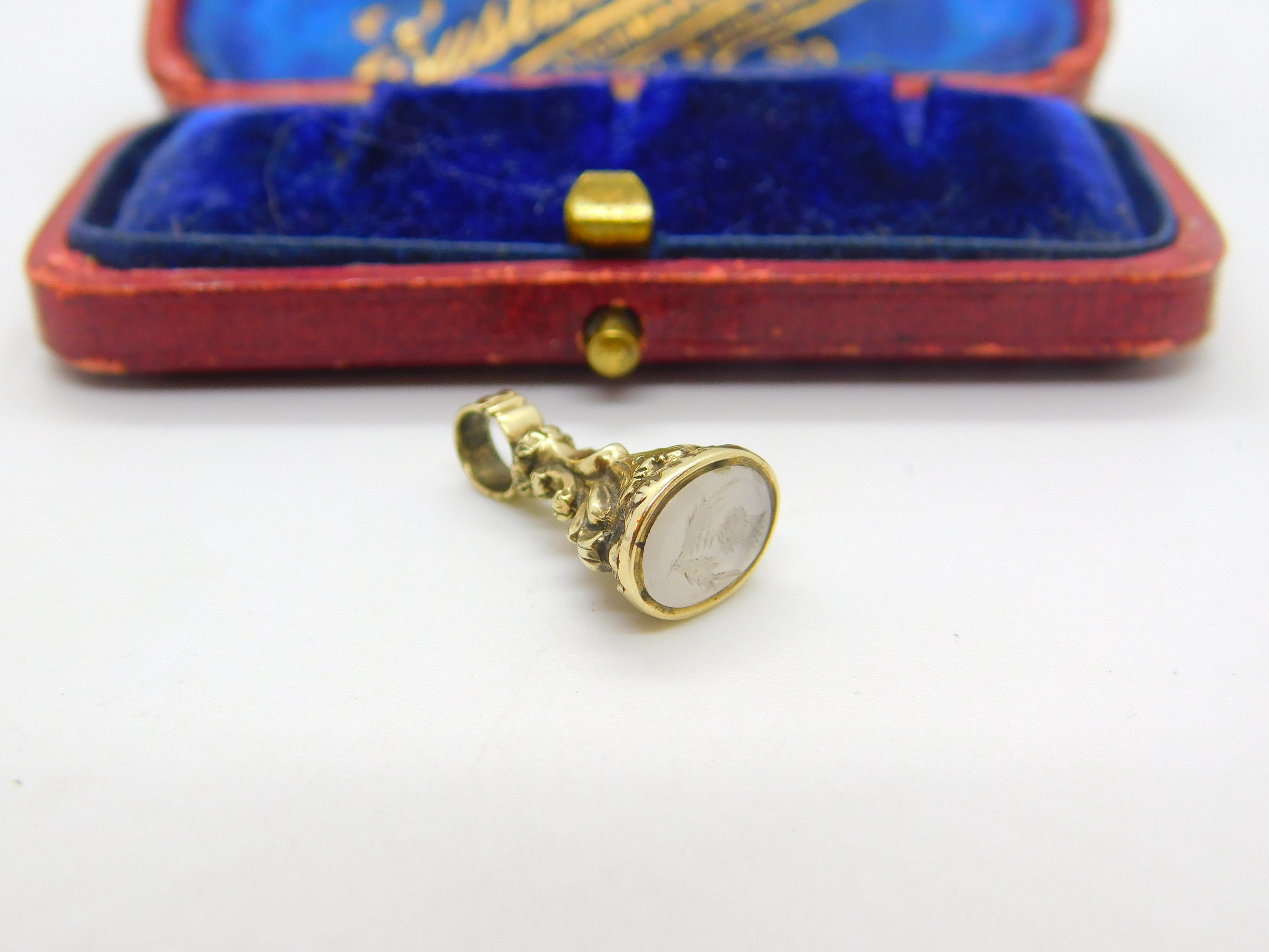 Victorian 15ct Gold & Carved Chalcedony Scottish Thistle Intaglio Fob Seal c1860