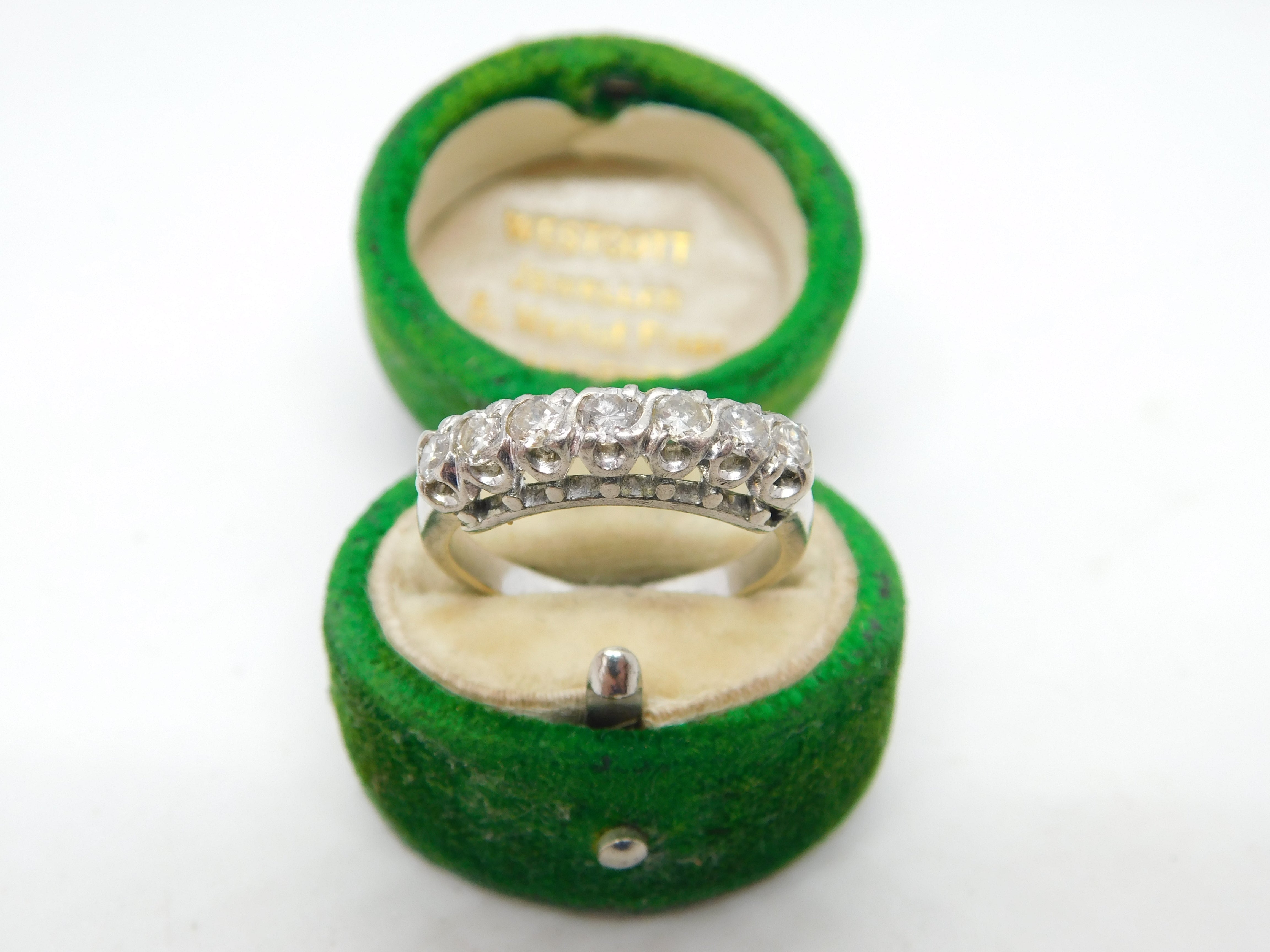 Victorian 14ct White Gold & 0.35ct Diamond Seven Stone Ring Antique c1890