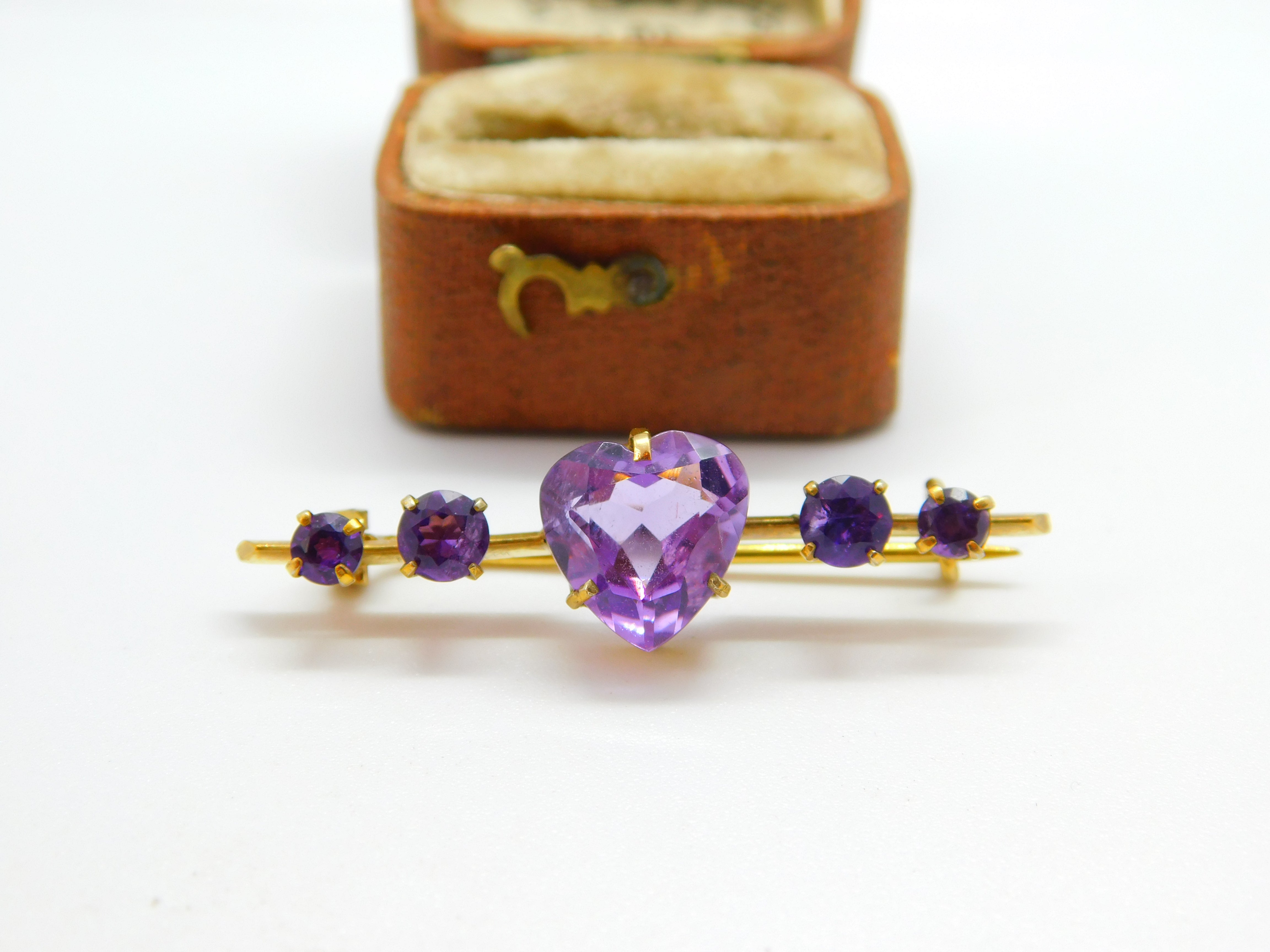 Victorian 15ct Yellow Gold Heart Cut Amethyst Sweetheart Brooch c1900 Antique