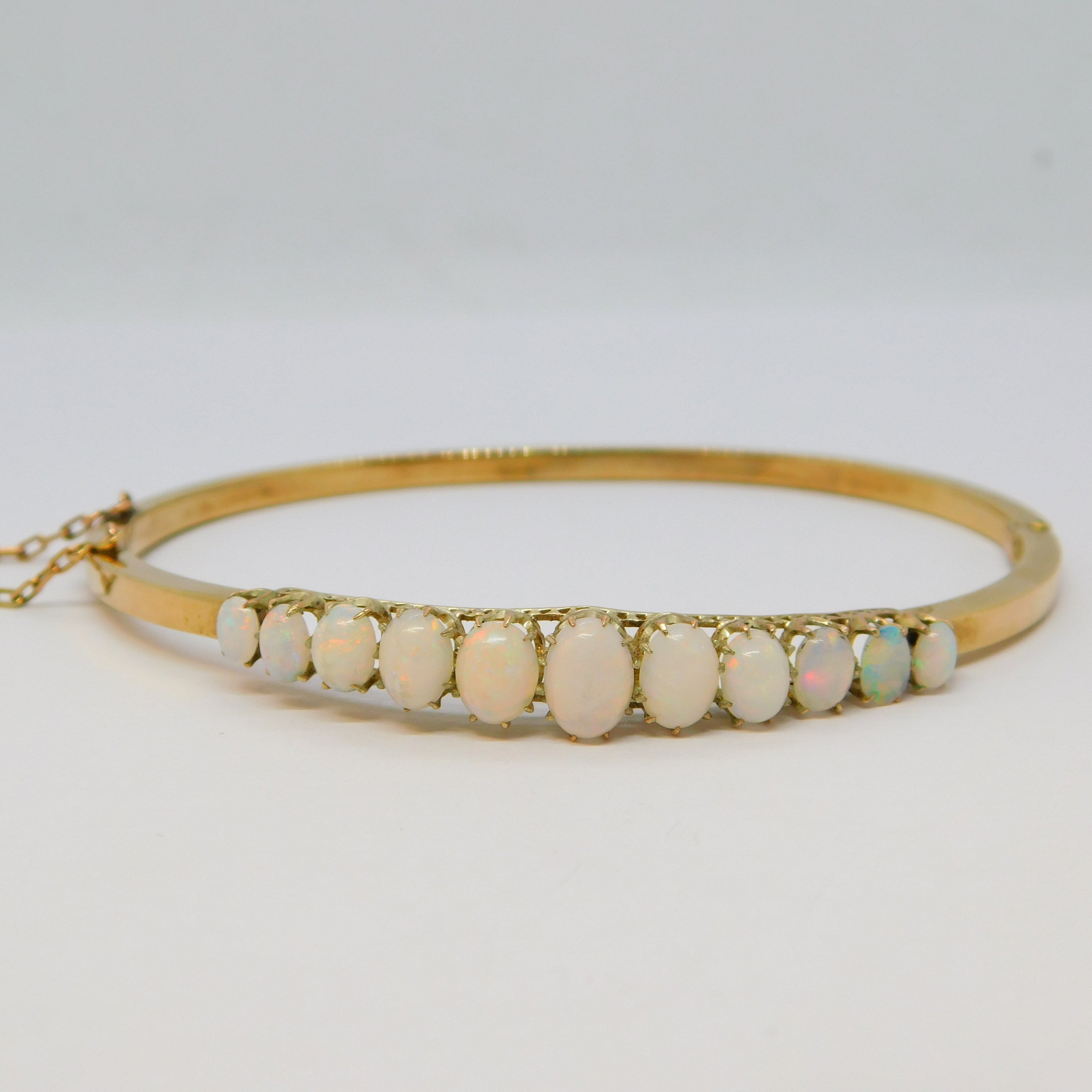 Victorian 15ct Yellow Gold Graduating Australian Opal Bangle Antique c1890