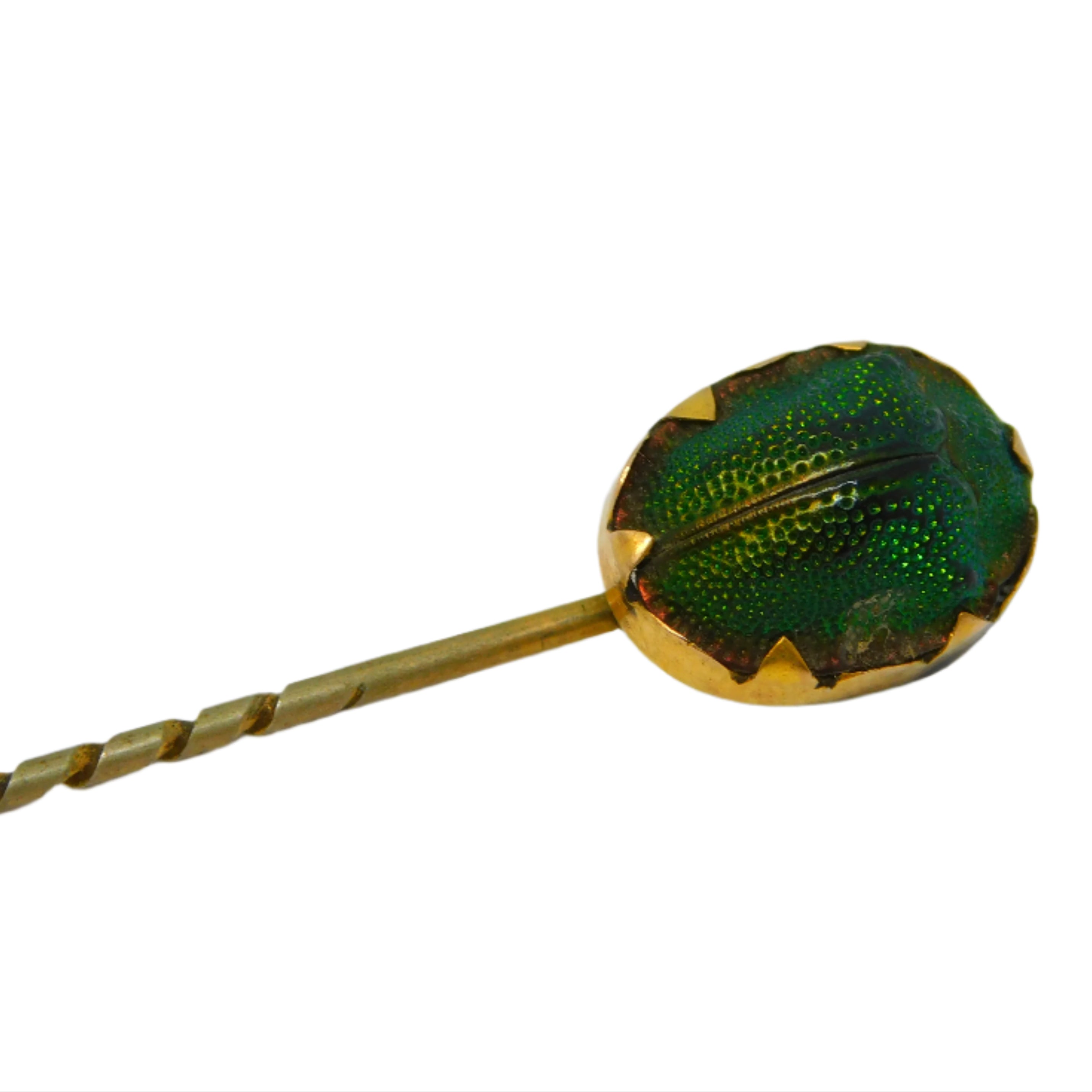 Victorian 15ct Yellow Gold Egyptian Scarab Beetle Stick Pin Antique c1860