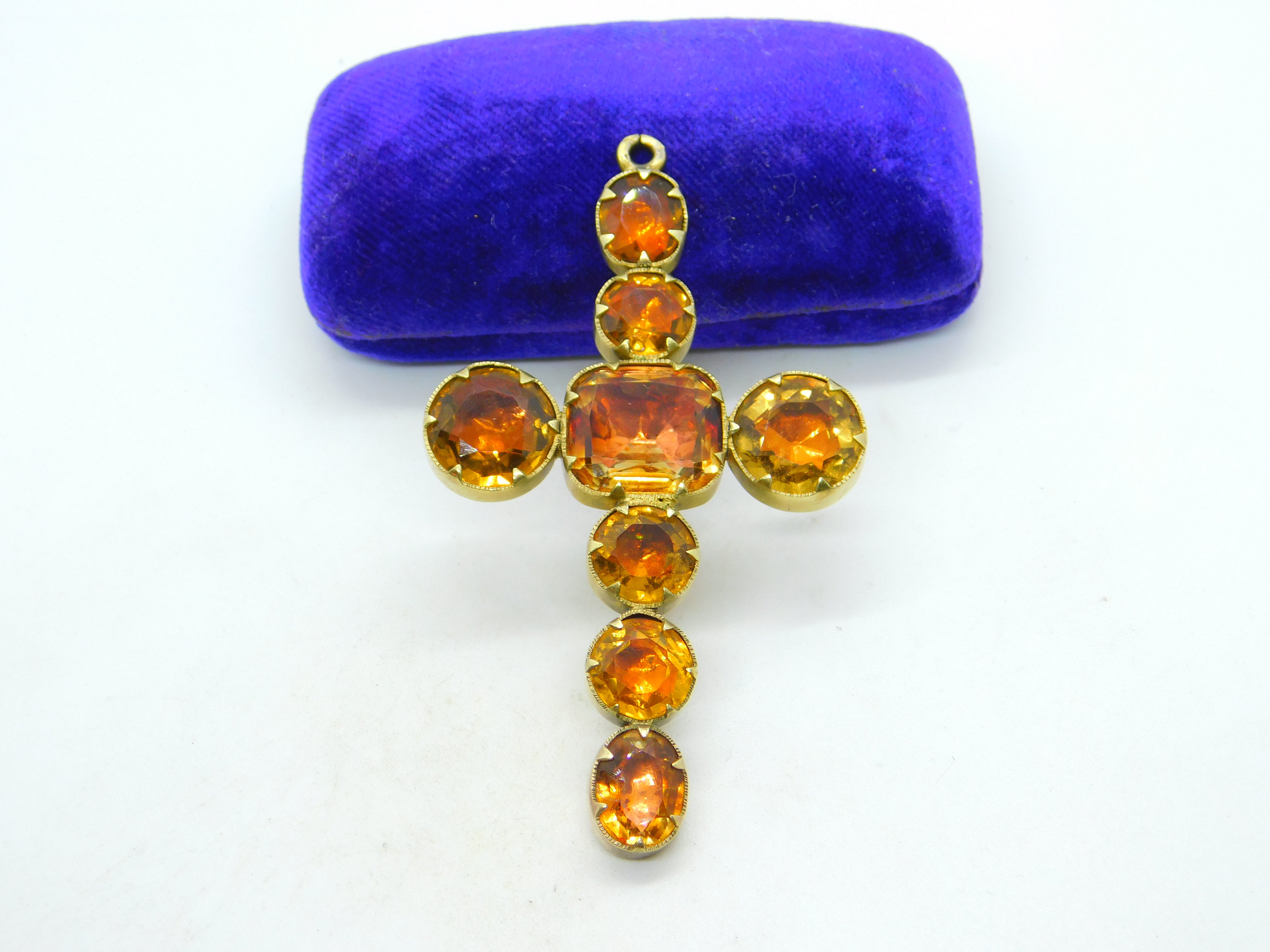 Victorian 15ct Yellow Gold Faceted Citrine Large Cross Pendant Antique c1840