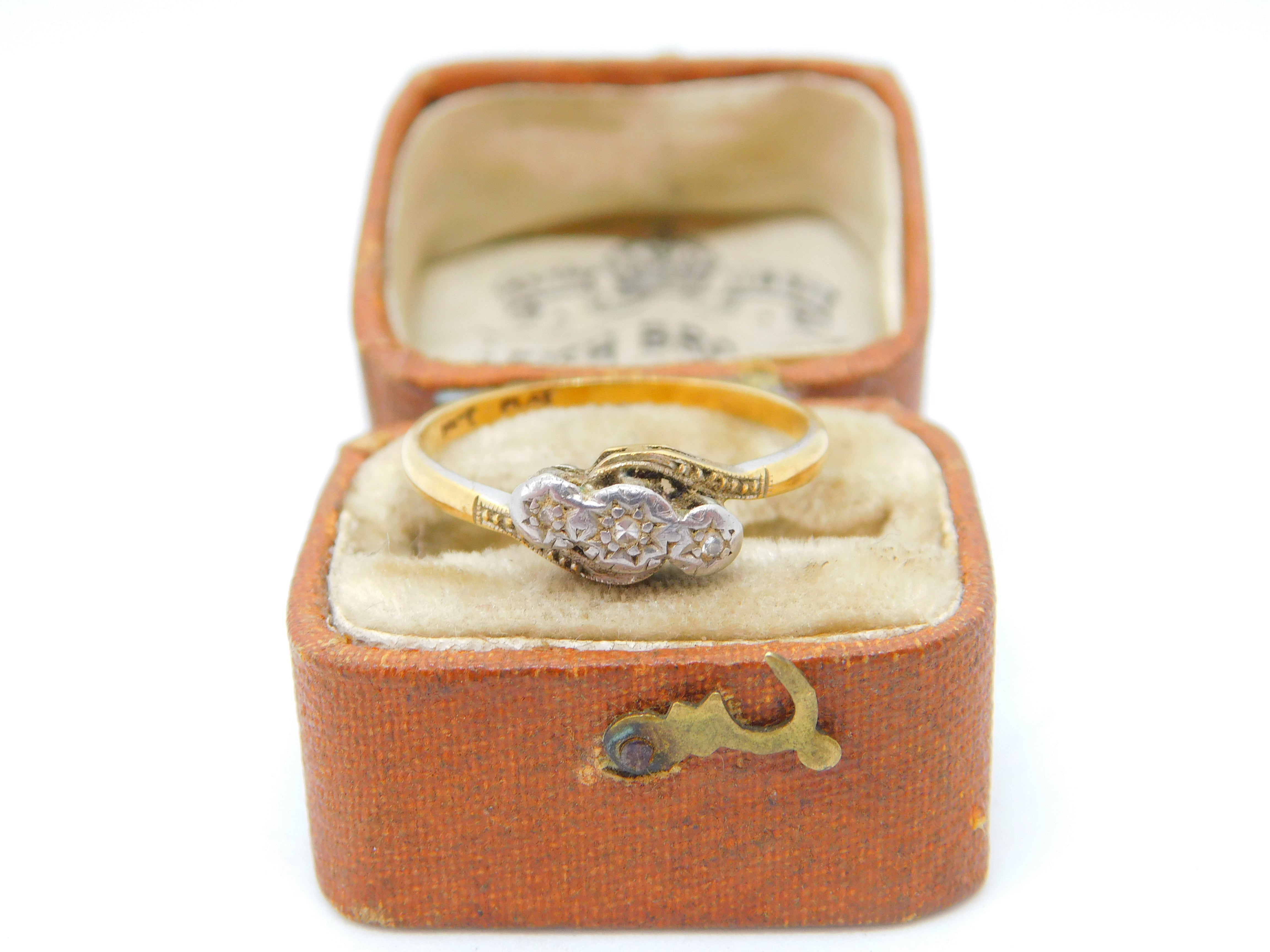 Victorian 18ct Gold & Platinum Set Diamond Crossover Ring Antique c1890