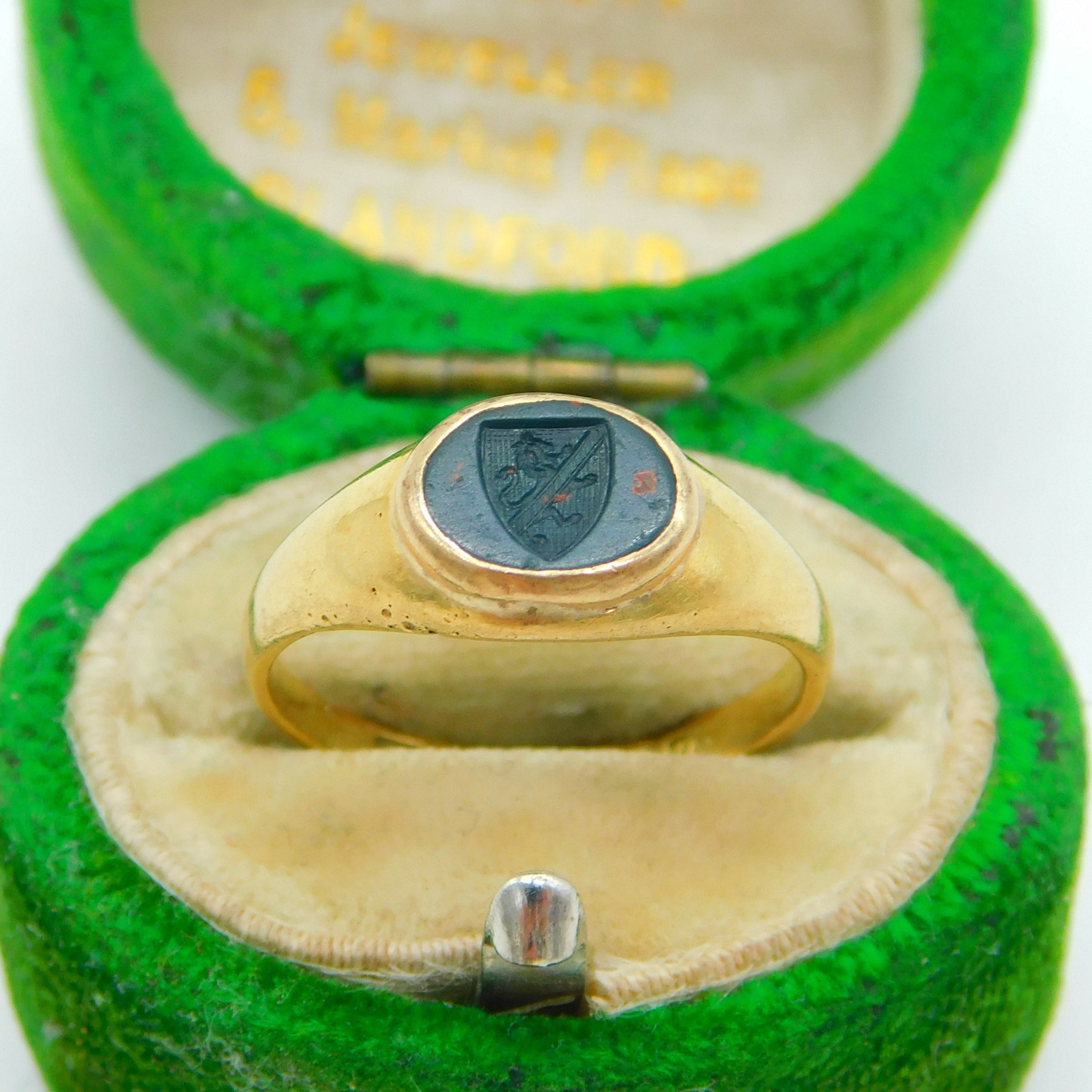 Victorian 18ct Gold & Bloodstone Lion Crest Intaglio Signet Ring Antique 1888 Birmingham