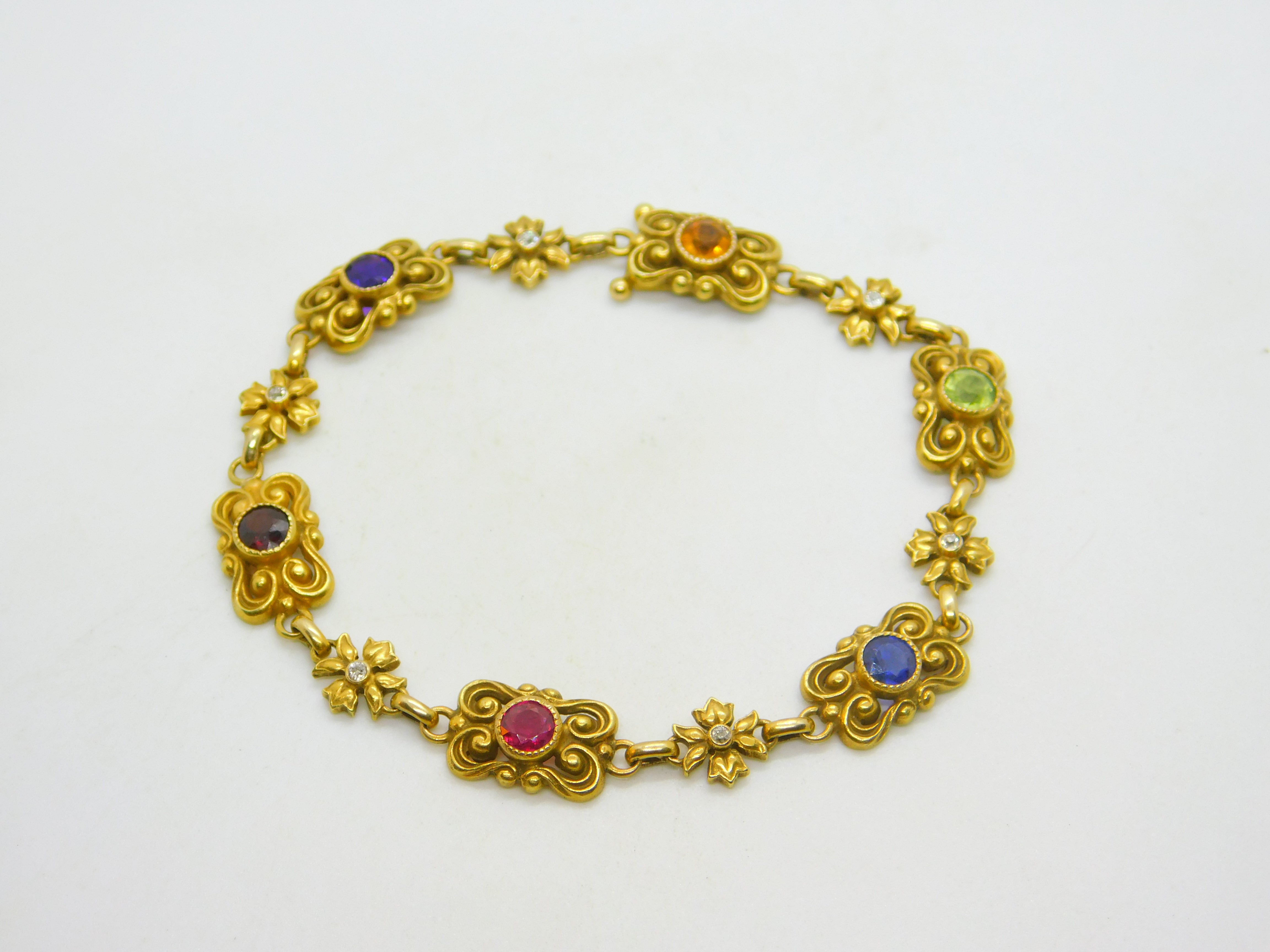Victorian 18ct Gold Acrostic Bracelet Ruby, Diamond, Sapphire Antique c1880