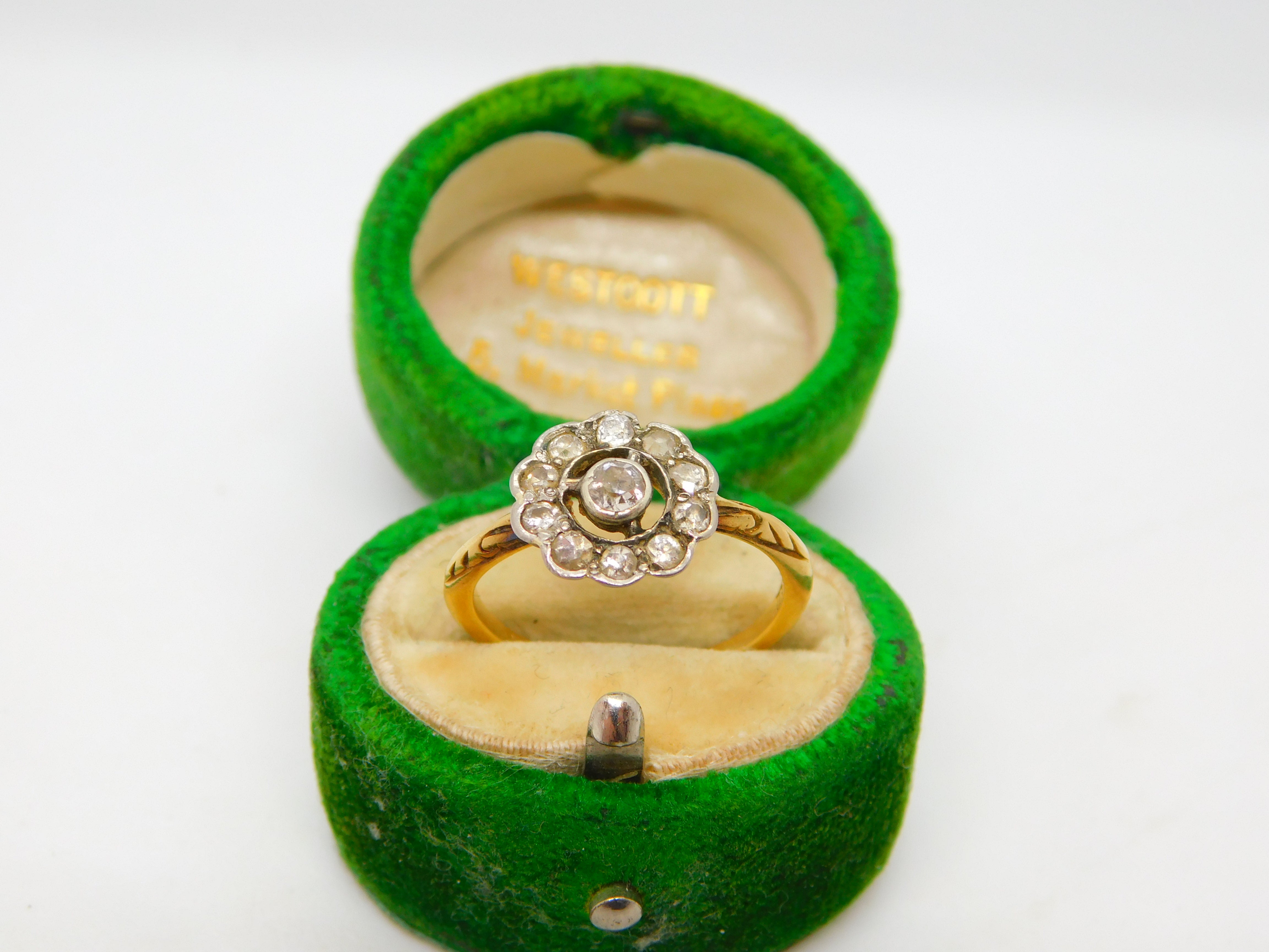 Victorian 18ct Gold & Diamond Set Floral Daisy Cluster Ring Antique c1890