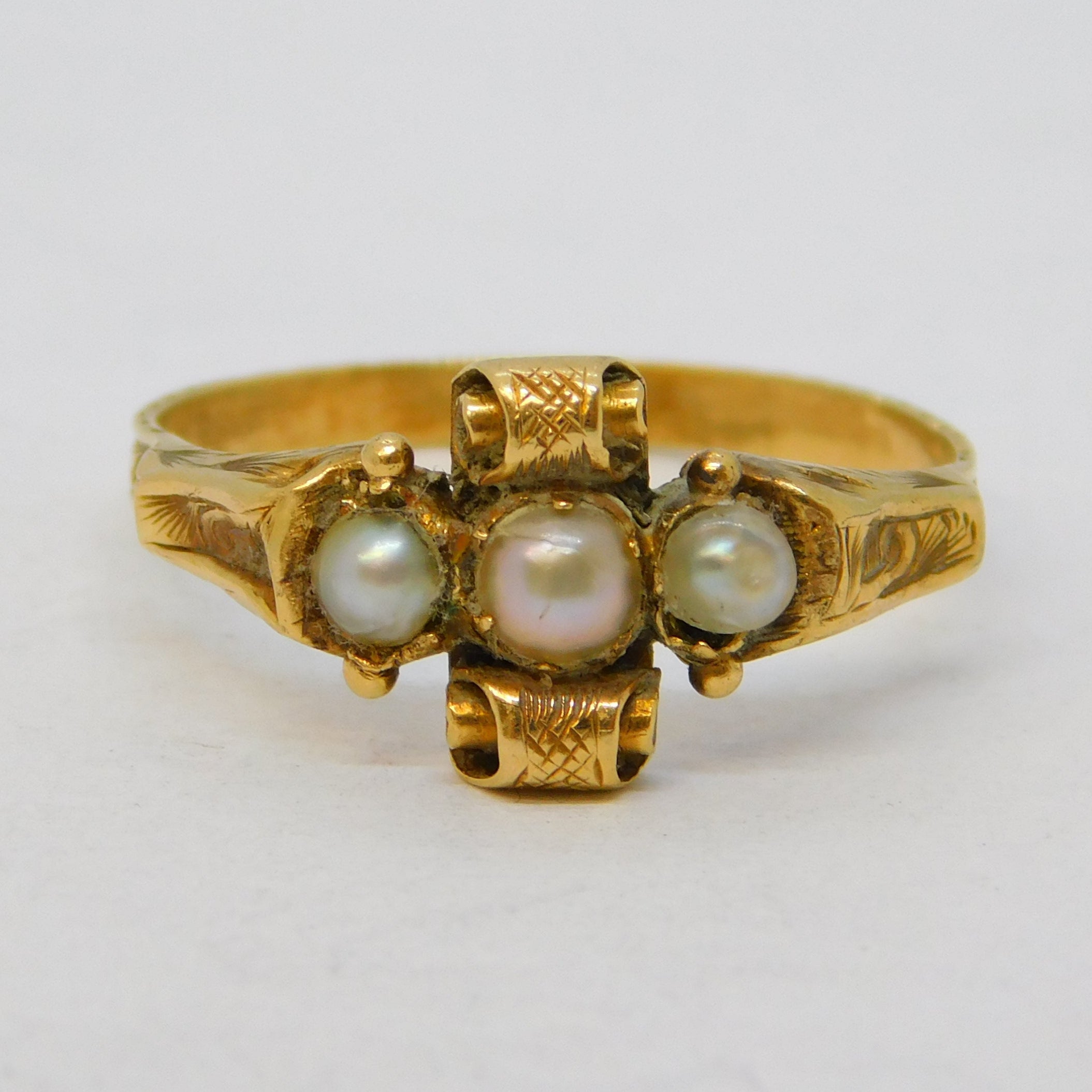 Victorian 18ct Yellow Gold Blistered Pearl Dress Ring Antique c1860